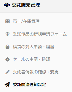 委託販売管理メニューの6番目に委託関連通知設定画面が追加されました。