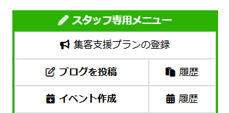 現在無料版の店舗ページ機能をご利用の方は、スタッフ専用メニューの「集客支援プランの登録」からご登録ください。