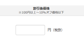 セールに参加したい作品の割引後価格をご入力ください。100円以上、10%オフ以下に設定していただく必要があります。