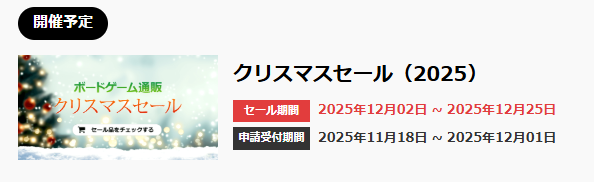ボドゲーマ内では5月の決算セールに次ぐ大きなセールで、時期的な関係からも非常に多くの方に作品をお届けできるチャンスとなっています。
