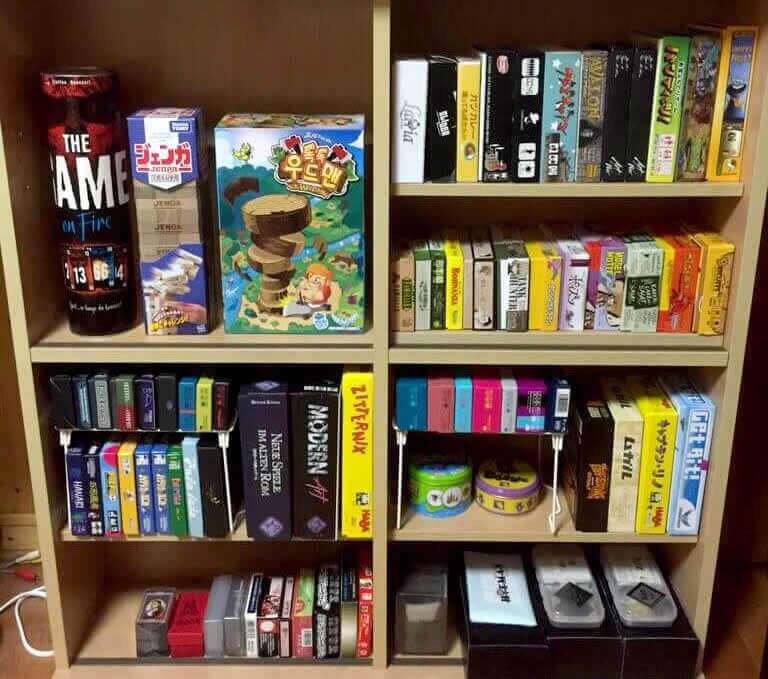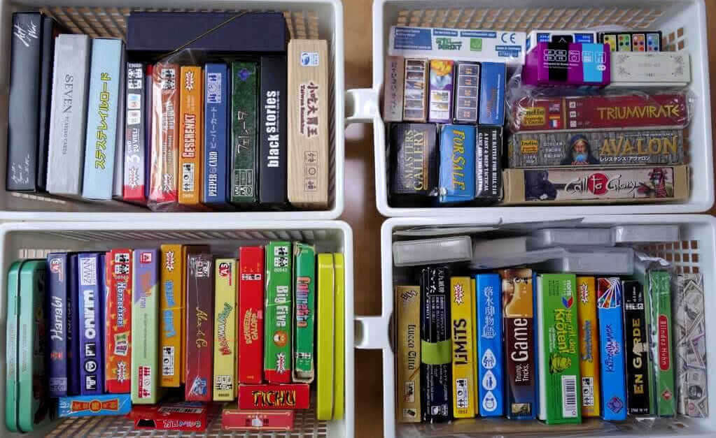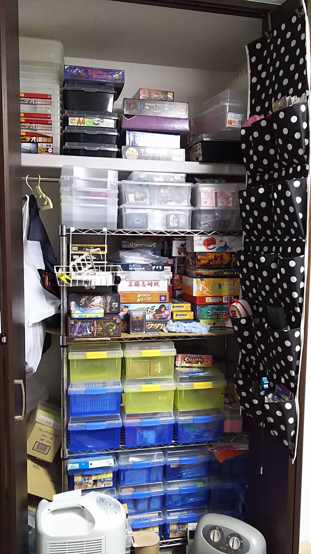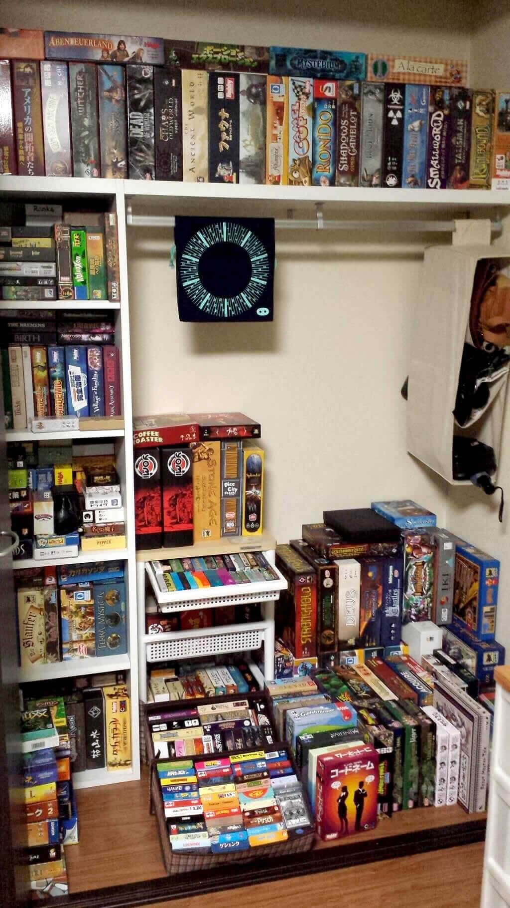 クローゼットを専有したり、壁一面がボードゲームになってるのをみるといやはやさすがと言ったところです。人数別に収納するという機能美を考えられている方もいて参考になります。箱をゴムで固定する派は思っていたよりも少数派で、所有数に限らず好みのようでした。