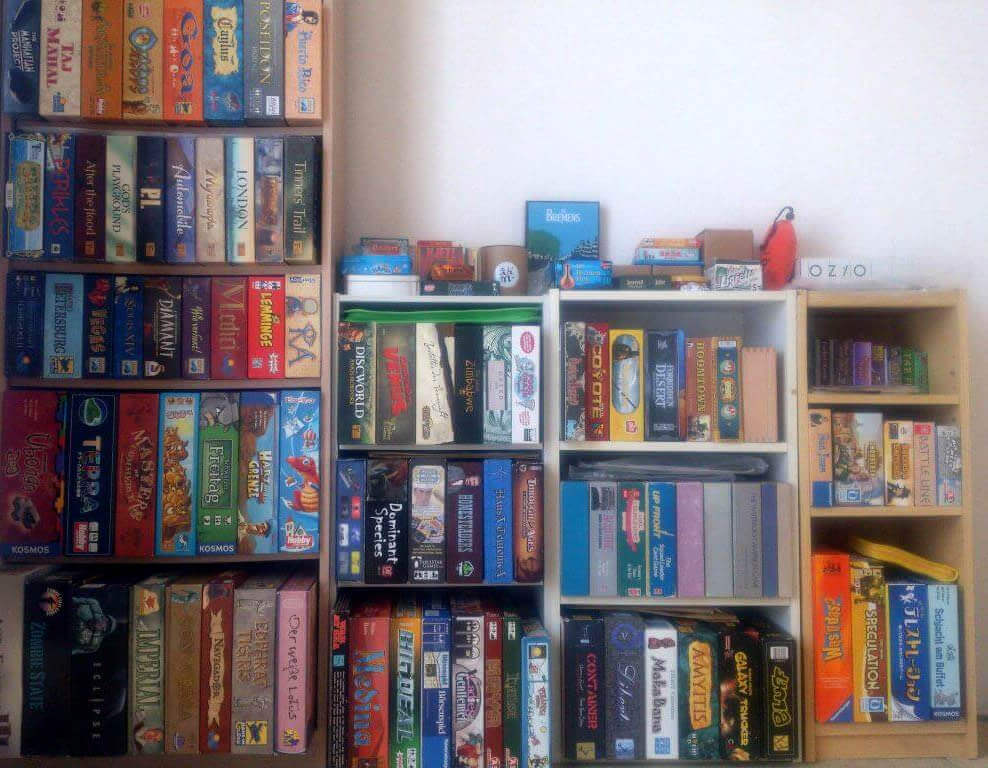 ボドゲ歴12年、460個持っていたりゅうさんの棚。現在は選りすぐりの180個が収納されているようです。ちなみにプレイ人数別に整理されていて、集まった人数によって見るべき棚がまとまっています。超機能的な運用方法です。200個近く所有されている方、人をよく呼んでいる方はこの管理方法ぜひ参考にしてみてはいかがでしょうか。