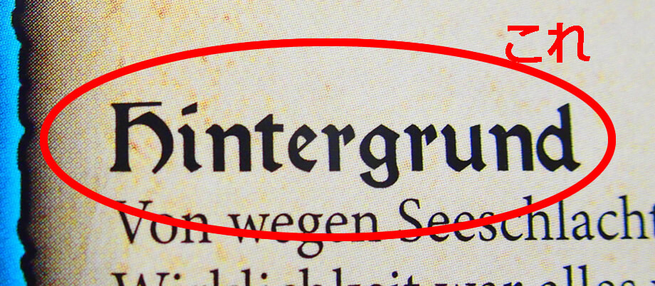 とりあえず、文字の感じと最初の章に使われているということから、単語の意味にあたりをつけ、なんとか辞書でHintergrundという単語にたどり着きました。これは英語でいうBackground、つまり日本語で読むなら(物語の)背景という意味でした。