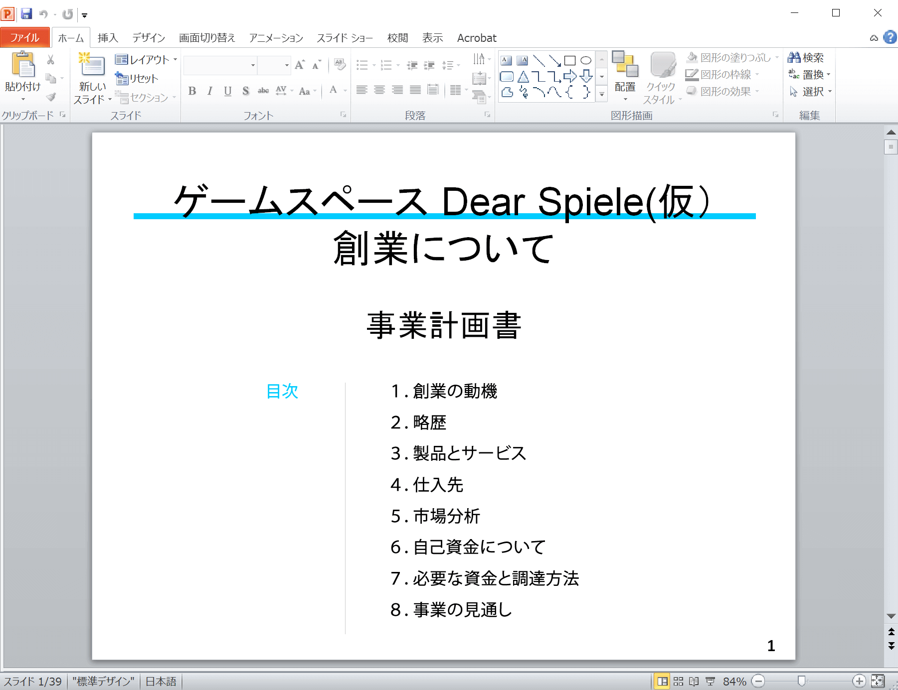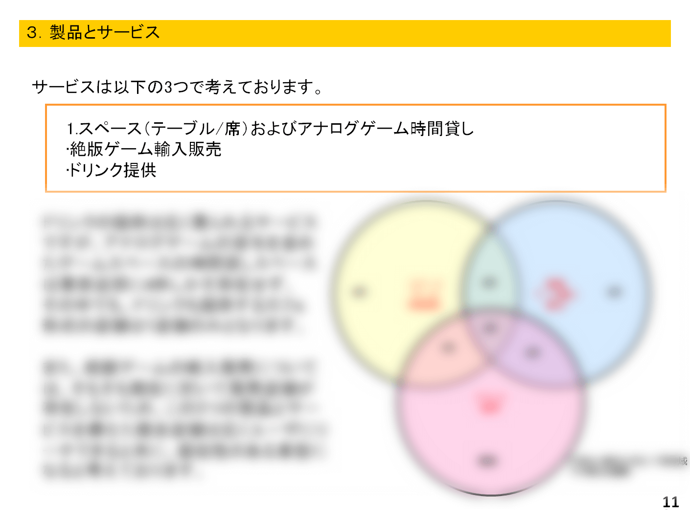 融資を受けるときに説明資料として使いましたが、そのために作ったというよりかは自分の中で事業のイメージを膨らませるために作成しました。今見ると、融資を受けるために自分を大きく見せようと、嘘ではないですが恥ずかしい自慢のような内容になっていますね(汗)本当に恥ずかしいです。
