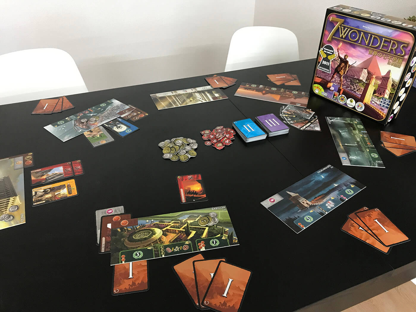 世界の七不思議では、軍事点を比べあって高いほうが勝利点をもらうというように、間接的になっています。直接攻撃ではなく、中央のボードを介して攻撃するとか、共通の目標を誰が一番先にぶんどるか、みたいな間接的なプレイヤーインタラクションになっていく動きがあります。