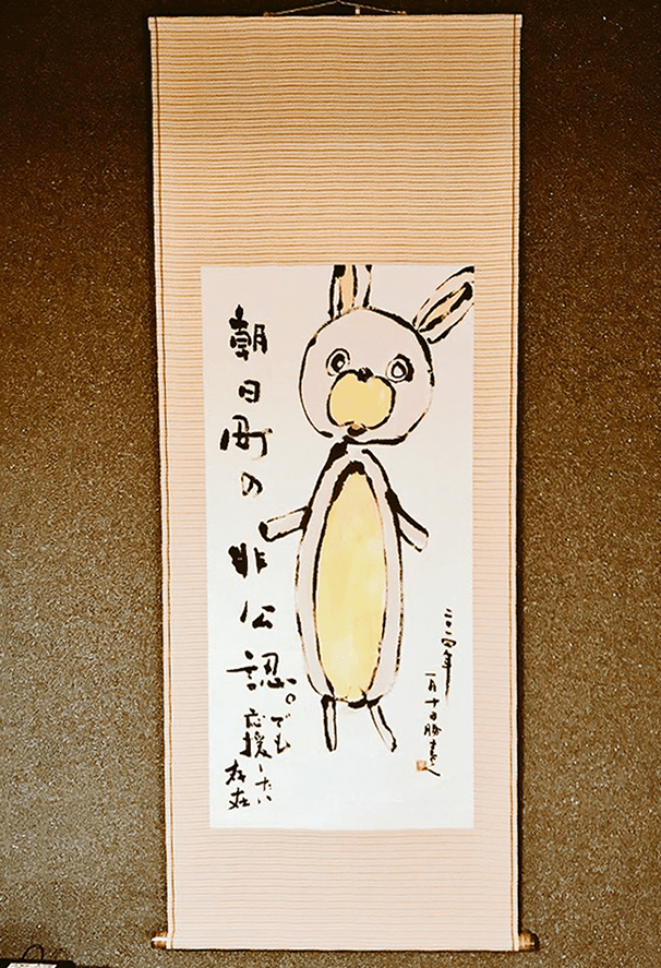 こんな素敵なゲストハウス、遊びに行きたい!と気持ちが高まったところで、松本亭一農舎を運営している佐藤さんのご紹介です。佐藤さんは、朝日町のゆるキャラ「ウサヒ」を運用しており、「まよひが企画」という会社を経営されています。
