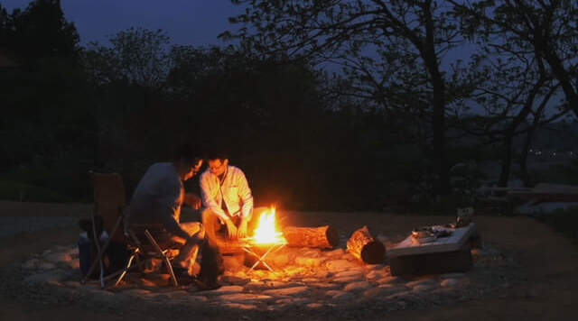 夜に火をつけてキャンプファイヤーを楽しむことができます。