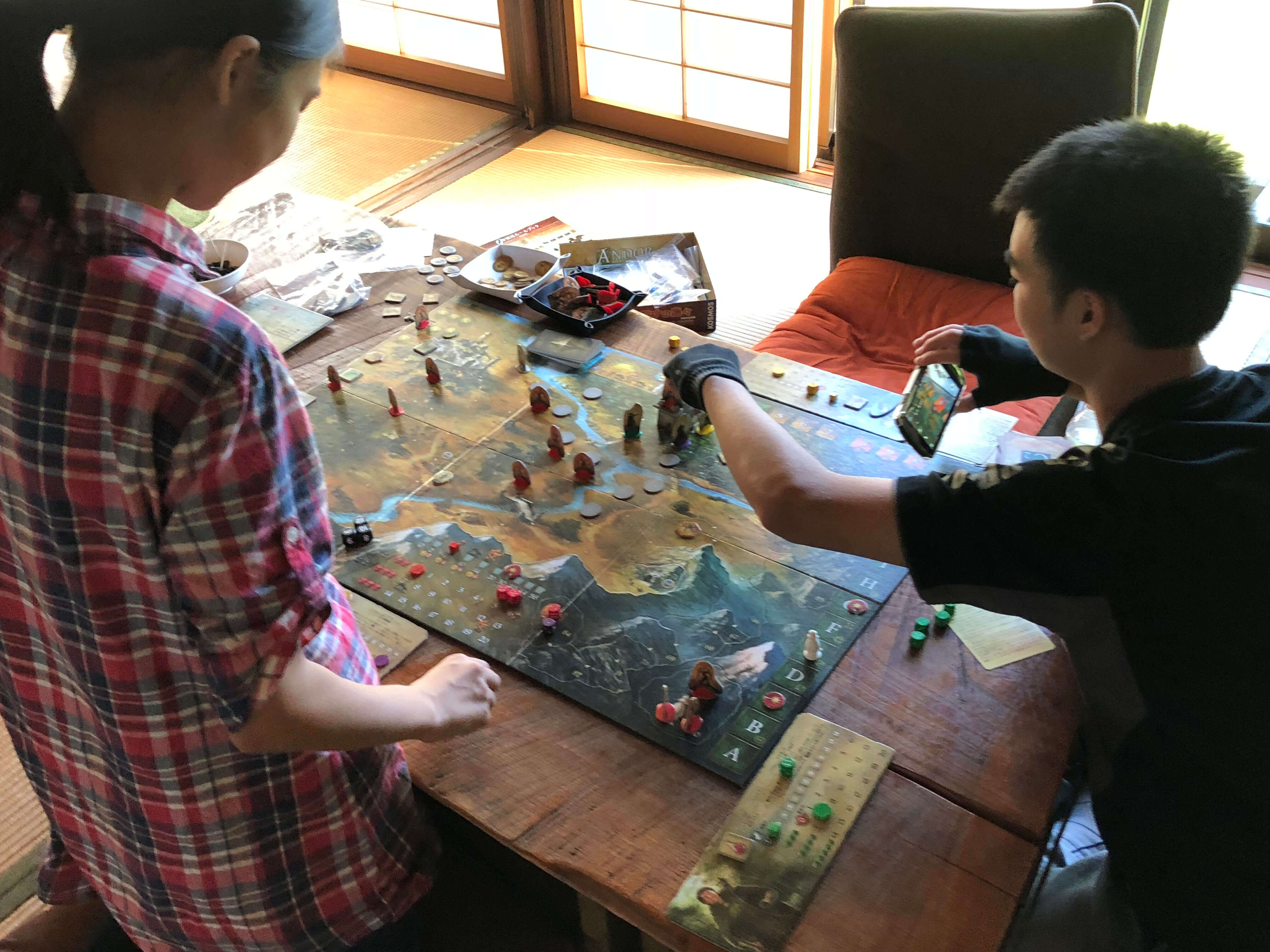 アンドールの伝説というRPGボードゲームがあります。次々と現れる敵と、課題の達成度によって変わるストーリーが特徴で、TRPGやテレビゲームのRPGが好きな人にとっては特に楽しめるゲームです。中断することもできますが、遊びきろうと思うと2時間、3時間と時間が必要です。そんなゲームも、松本亭一農舎では時間を気にせずのんびり遊ぶことができます。アンドールの伝説は宿にも置かれていますが、持ち込みゲームを遊ぶこともできます!ゲームをたくさん抱え込んでの合宿は、きっと良い思い出になるはず!