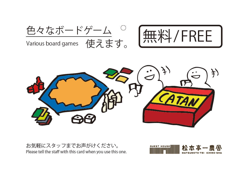 約60のボードゲームが置かれており、自由に遊べるだけではなく、スタッフの方にルール説明をしてもらったり、一緒に遊んでもらったりすることができるのです!(松本亭一農舎で遊べるボードゲームのリスト)