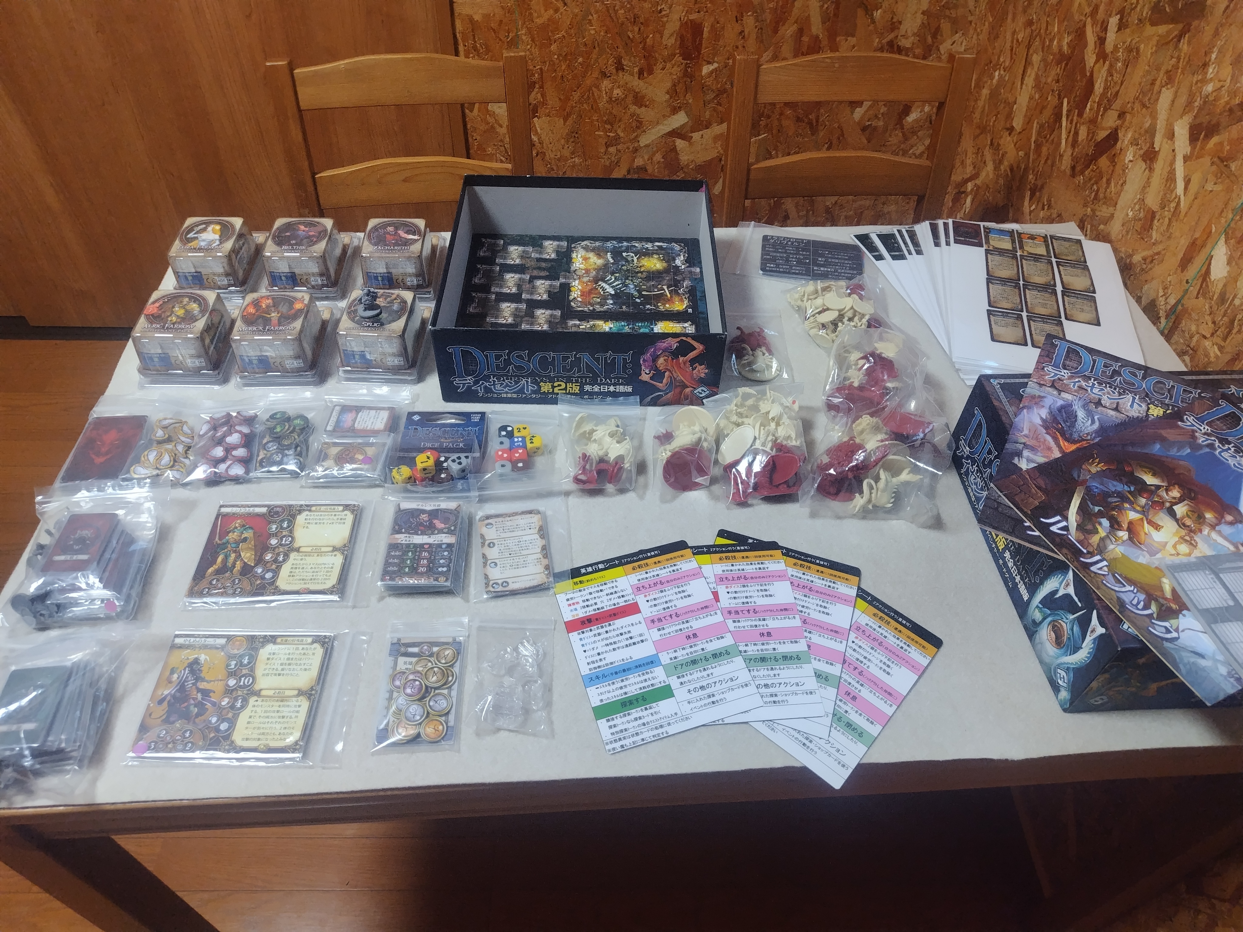 これは基本セットと追加ダイスセット、オーバーソウル(敵役のプレイヤー)の副官コマ(左上の小箱)