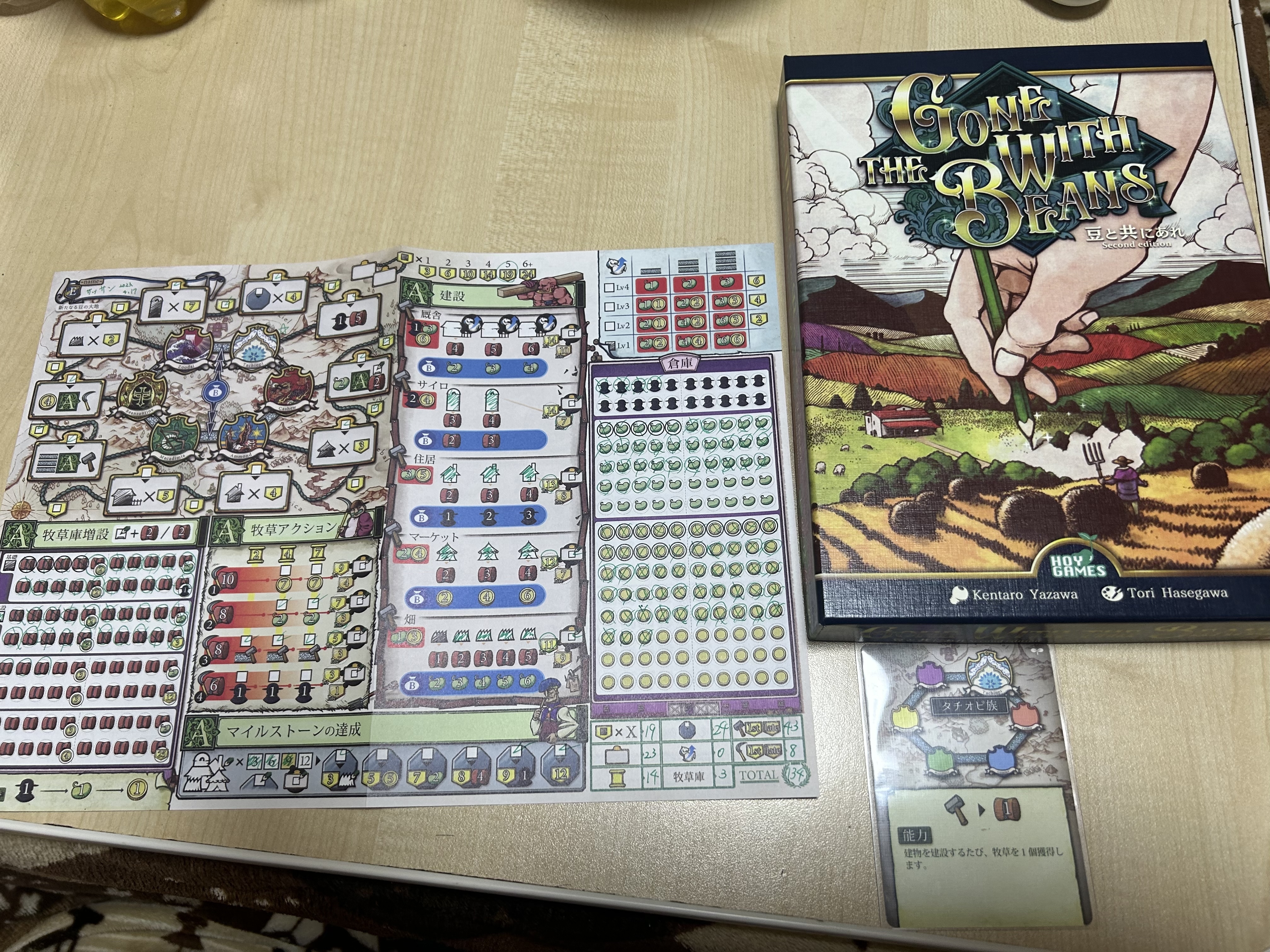 豆と共にあれ。タイミングさえあえば即買の一品です。超欲しい。カツカツのリソース管理とか絶対楽しいやつですよね。ゲムマ後に通販してくれないだろうか…
