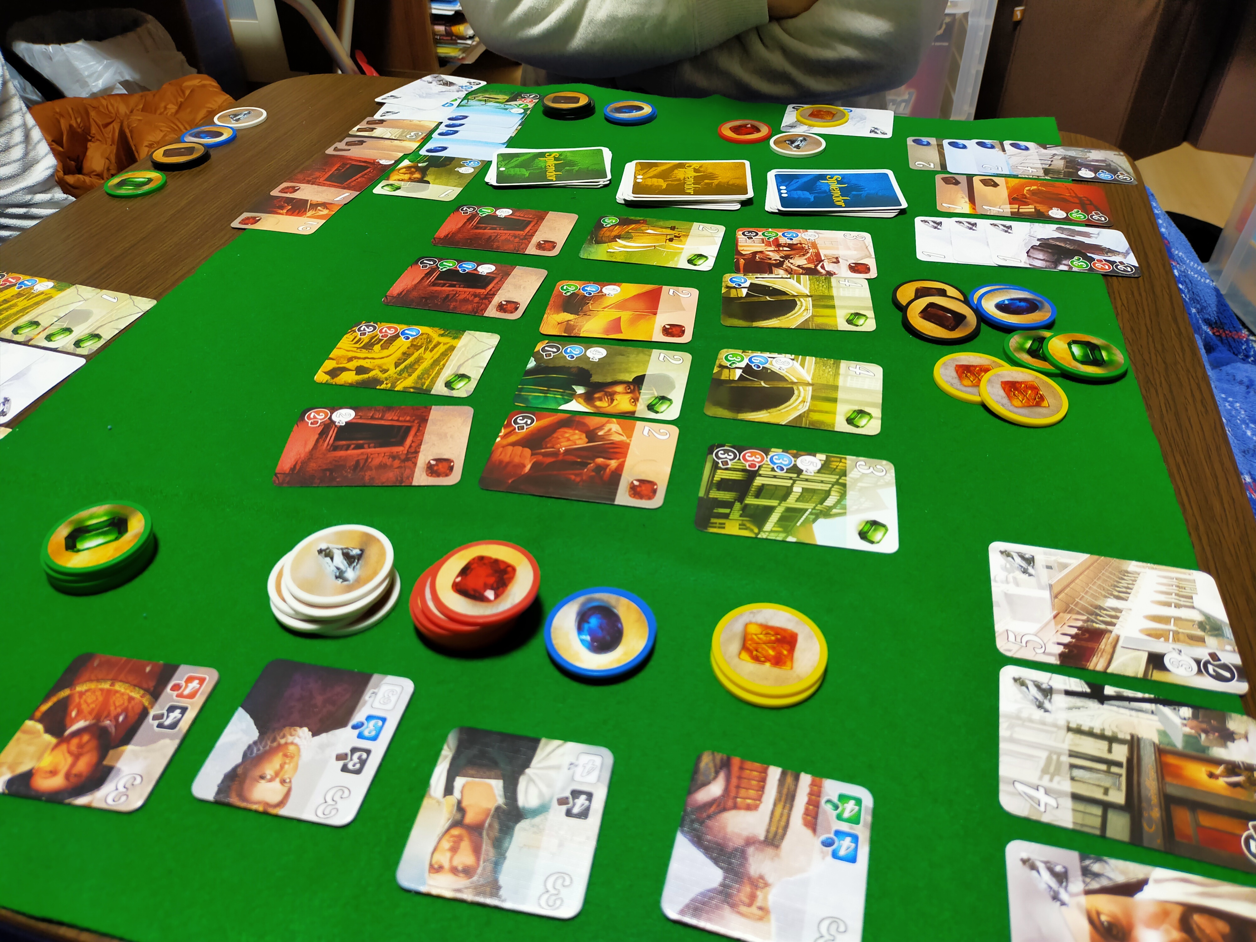 宝石の輝きはオモロイですよね。ルールはシンプルだけど、慣れてきたら他のプレイヤーの狙いが分かるから、避けるか邪魔するか悩まされます 笑