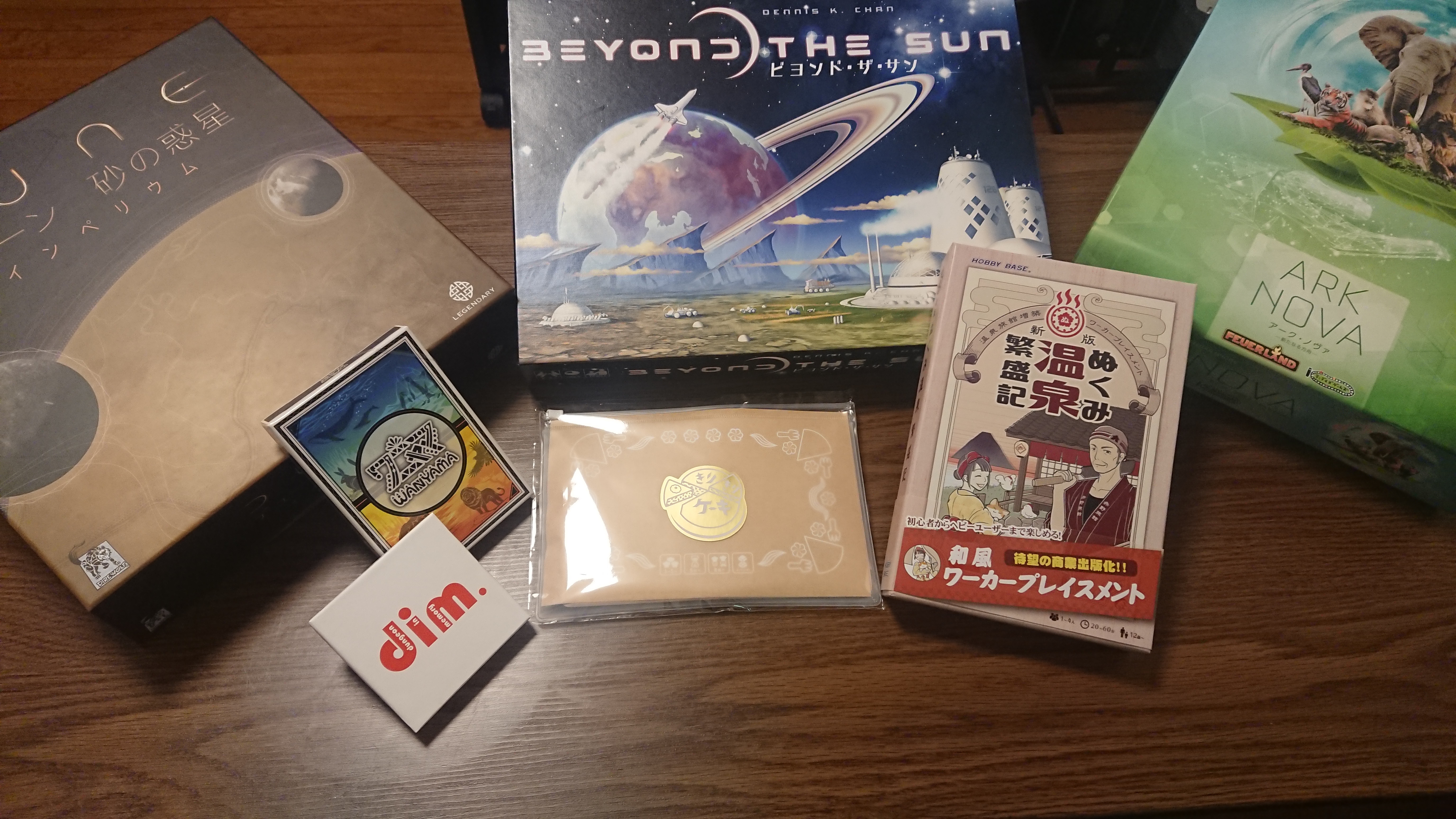 ゲームについて:アーク・ノヴァ、デューン・インぺリウム、ビヨンド・ザ・サンを想定しておりますが、このうち4/2時点で入手済みなのはアーク・ノヴァのみとなります。
