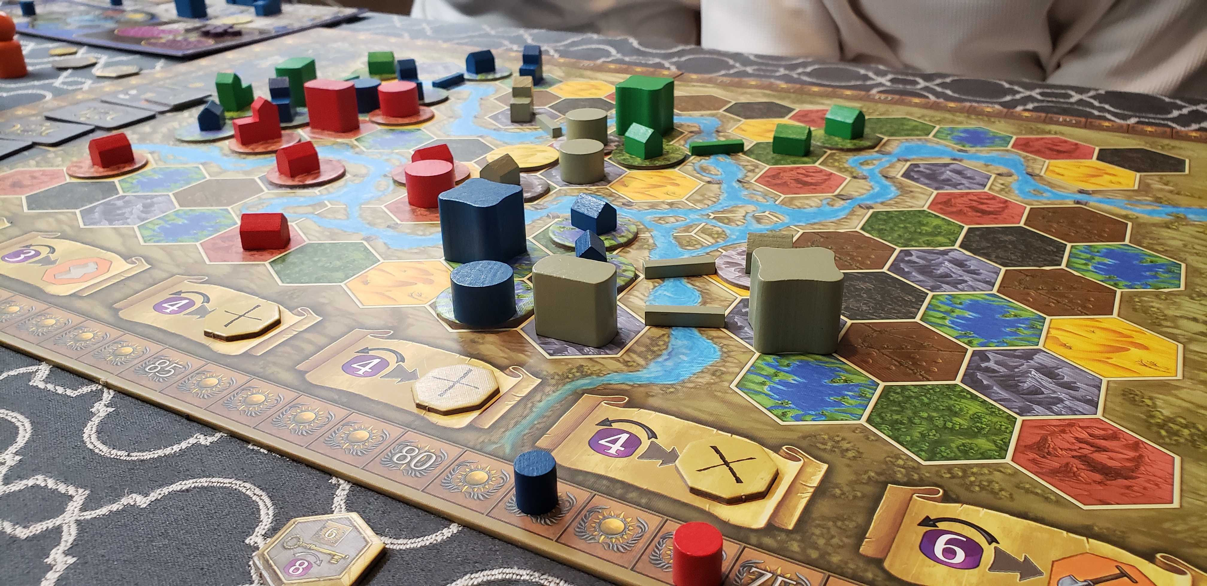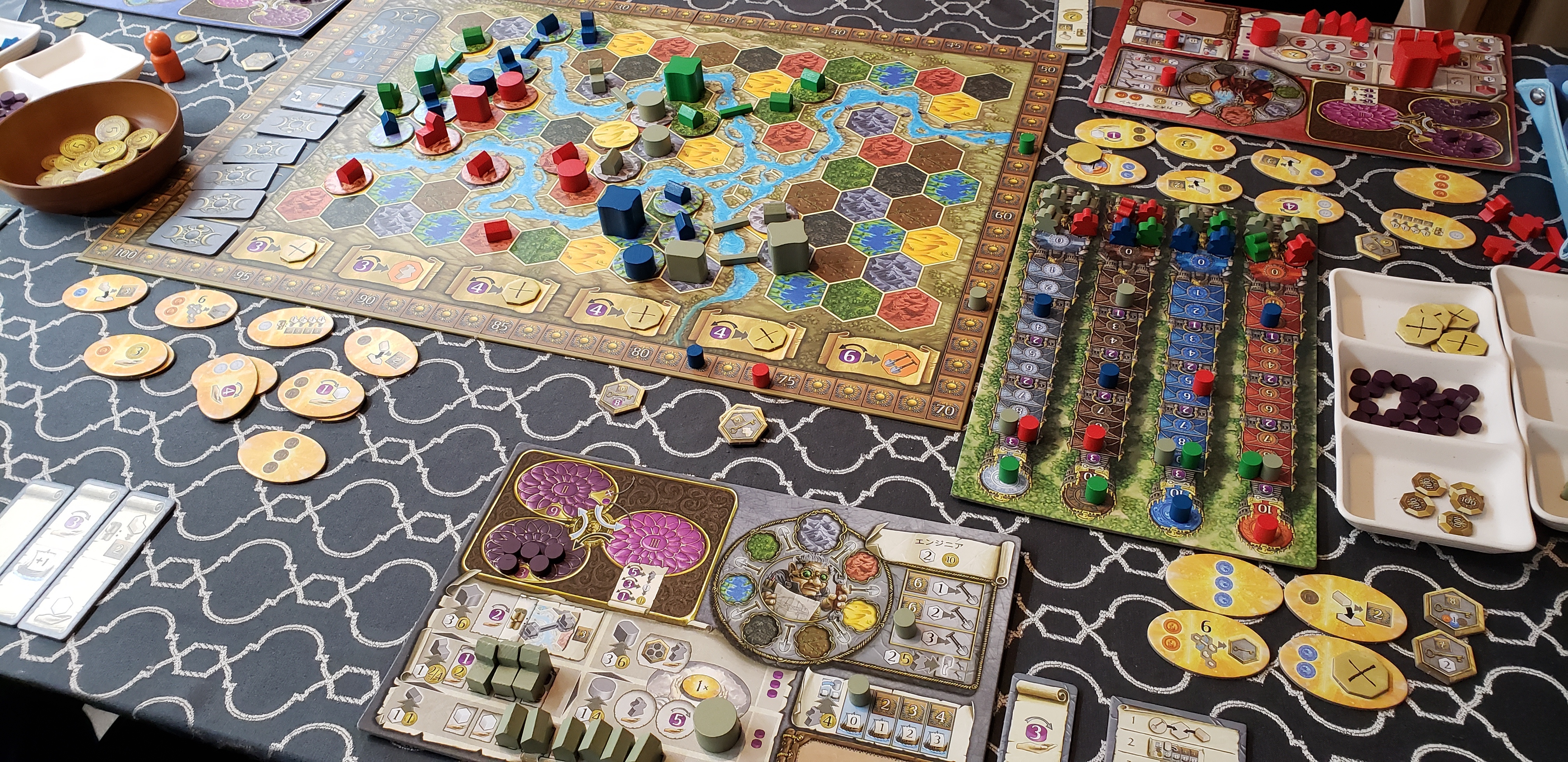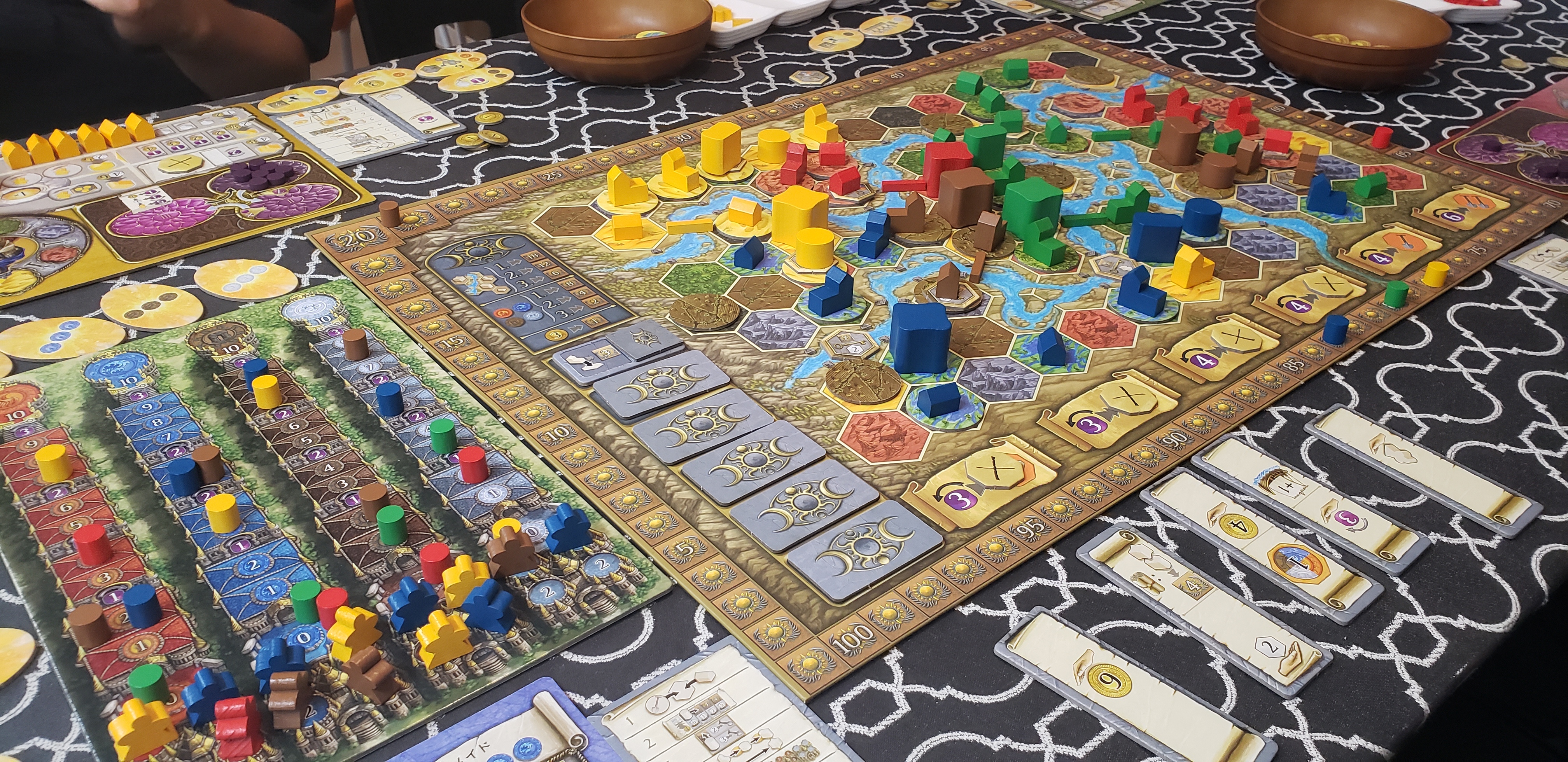 ファラオン:3人プレイで120点、121点、122点の大接戦でAQスタッフさんが勝利 Migraineは2位 最終手番で資源があと一個足りなかった…