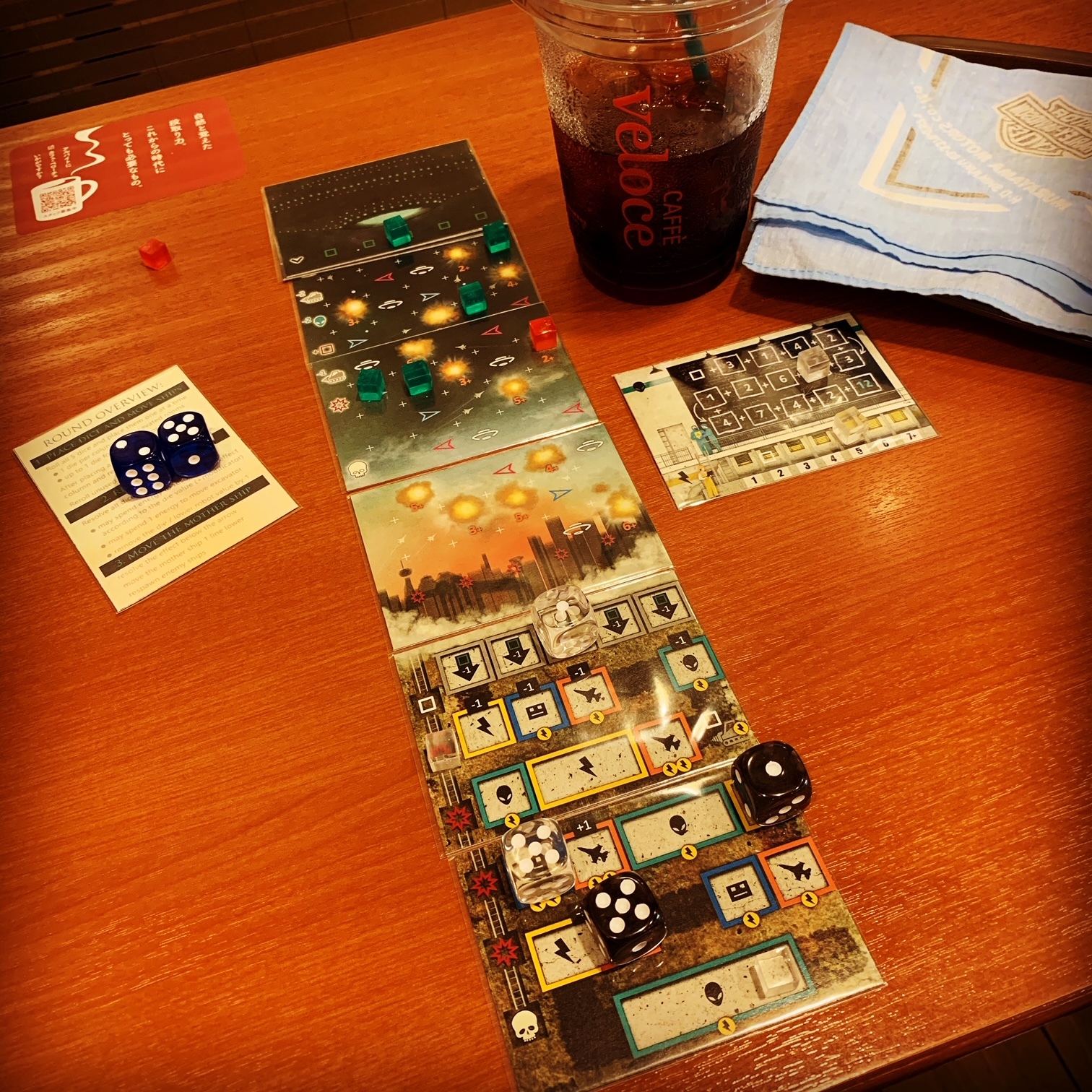 写真のダイス類はサグラダのものを使ってますw(右はカードだけ提示)