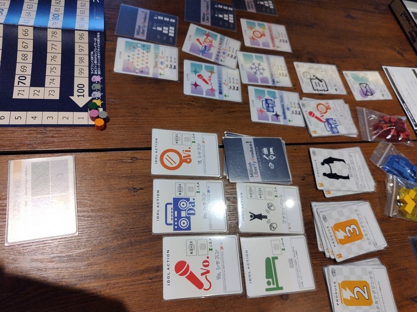 「ミリオンリバティプロデュース!」、ミリオンライブを題材にしたワーカープレイスメント+デッキビルドの本格的重ゲー!実際に最もプレイ時間が長くかかっていて、参戦したPさんたちは真剣にプレイされていました!