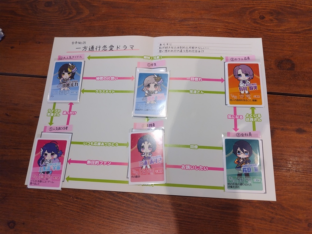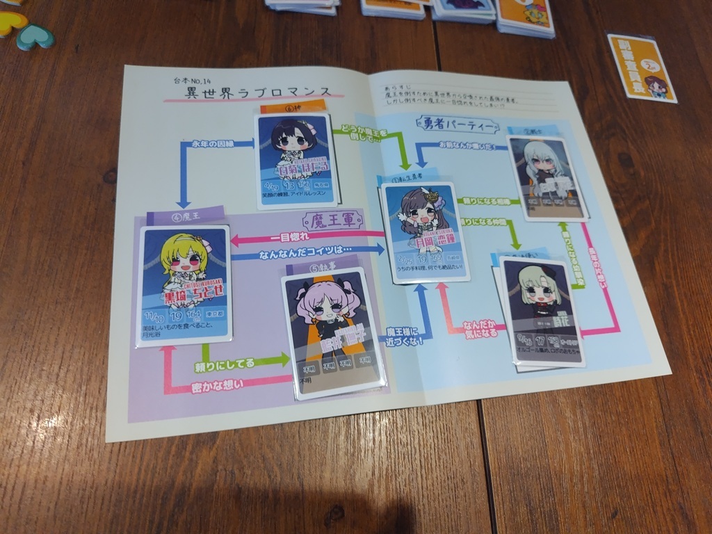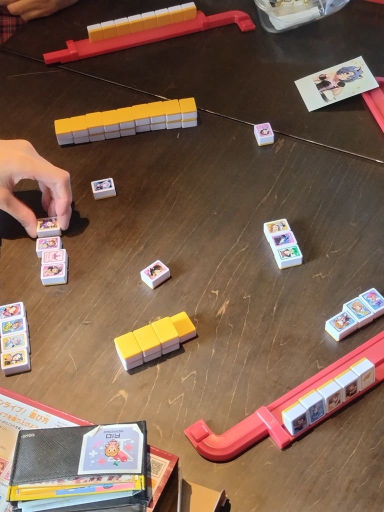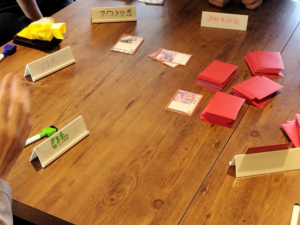 毎回、ボードゲーム未体験の方が来られたときにどうしようかと考えて、公式のドンジャラや狩歌、あるいはジャストワンのアイマスアイドル当てを導入としておりました。ちょっとまだご希望の方は来られていませんが、シャドウバースの初心者講習も企画しております。