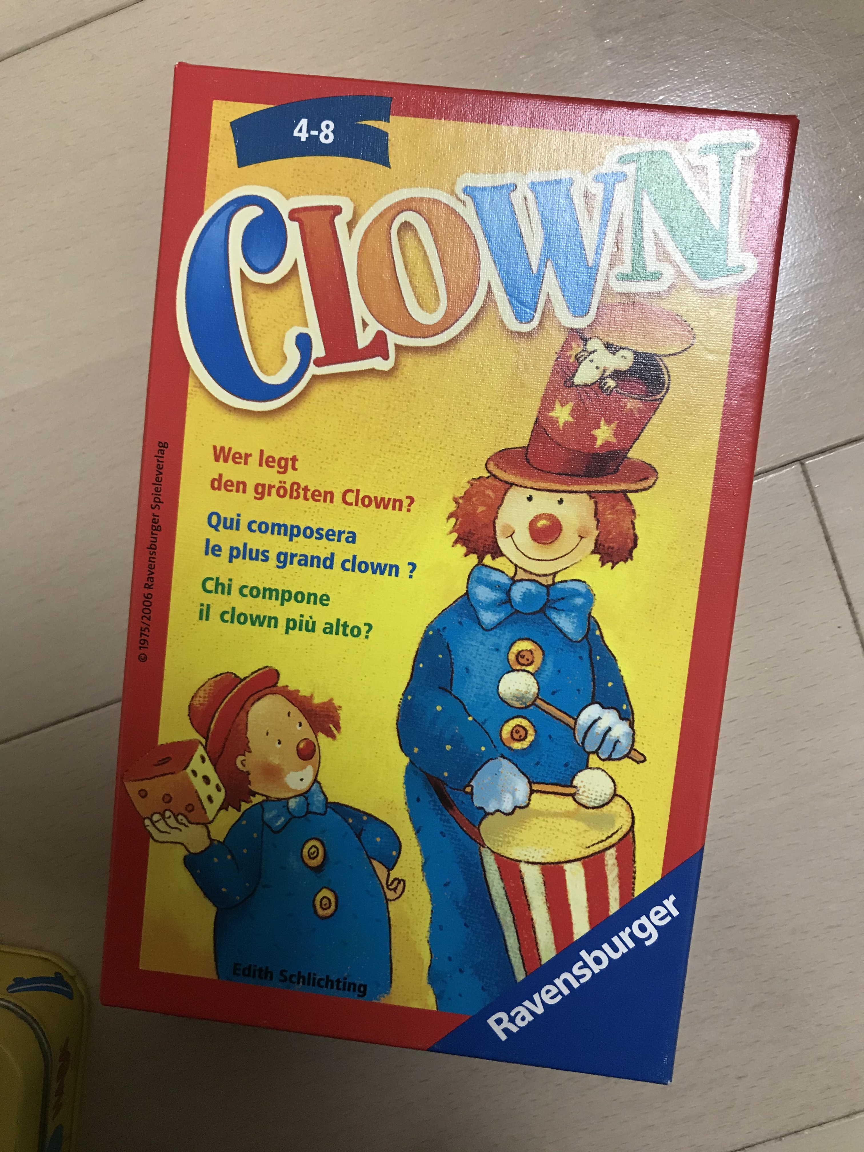 初めてボードゲームを買ったのは子供が2歳半の頃。親が手取り足取りでしたがCLOWNをしました。