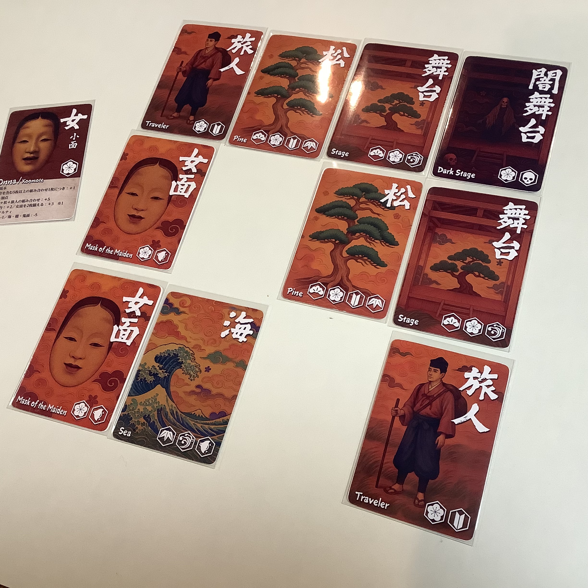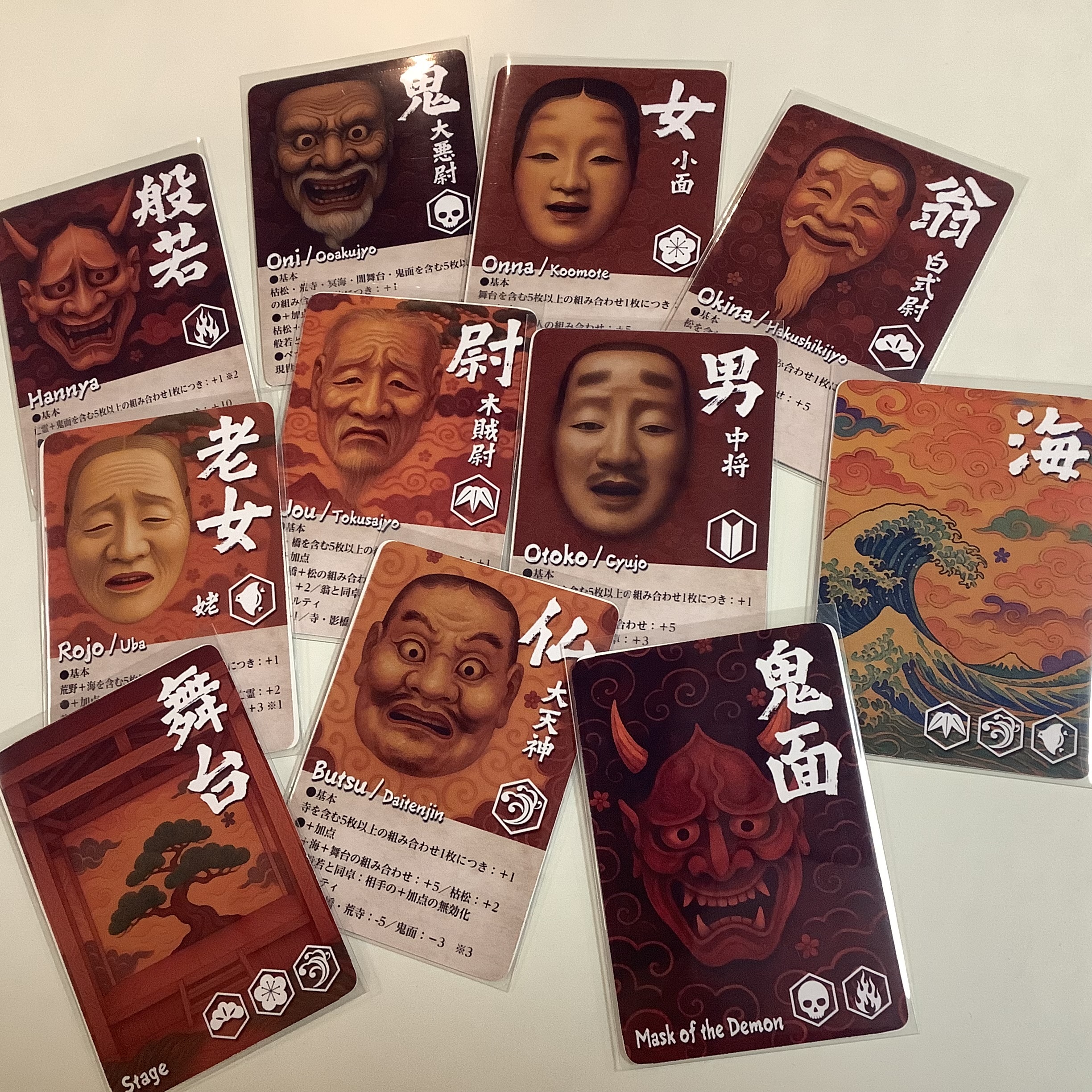 能楽をテーマにした、正体隠匿+セットコレクションゲームです。