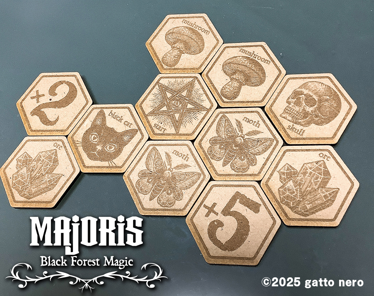 ゲームのタイルは、サンプルをレーザーカッターで切り出しました。