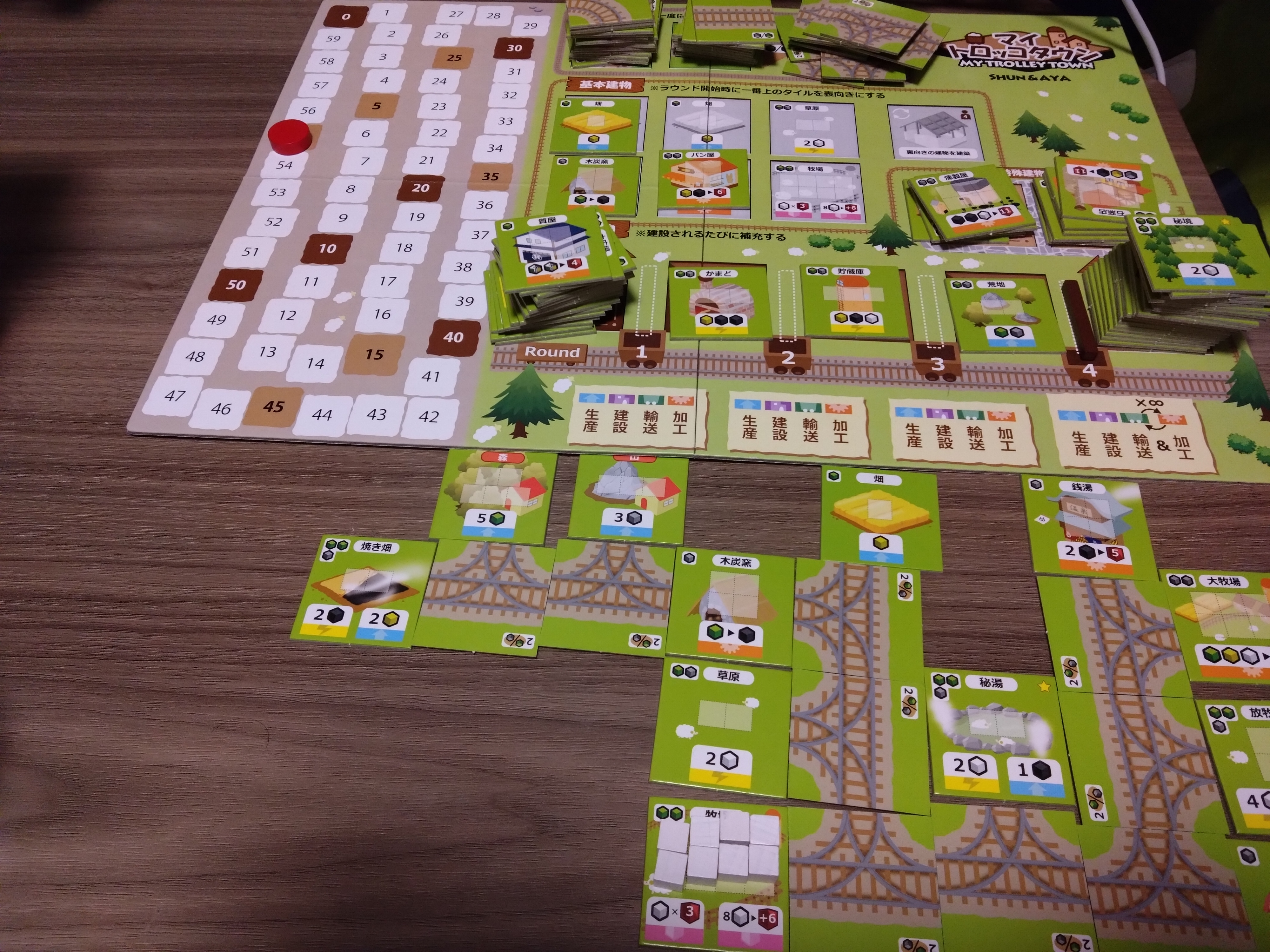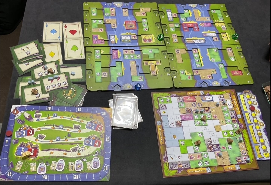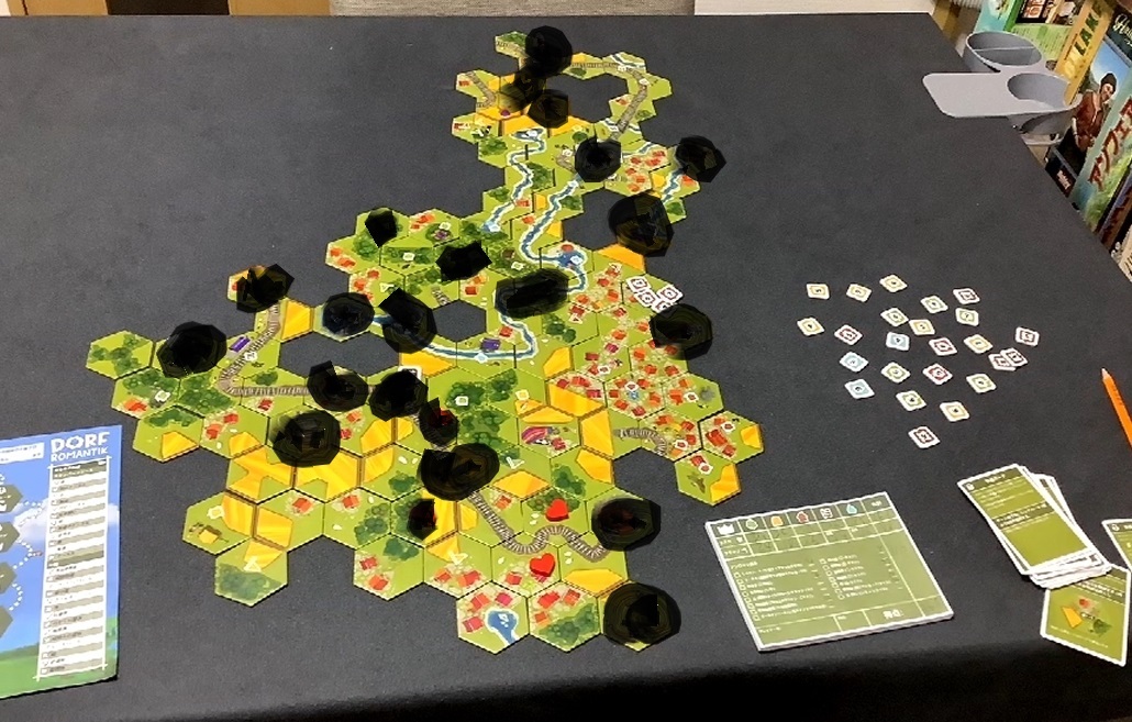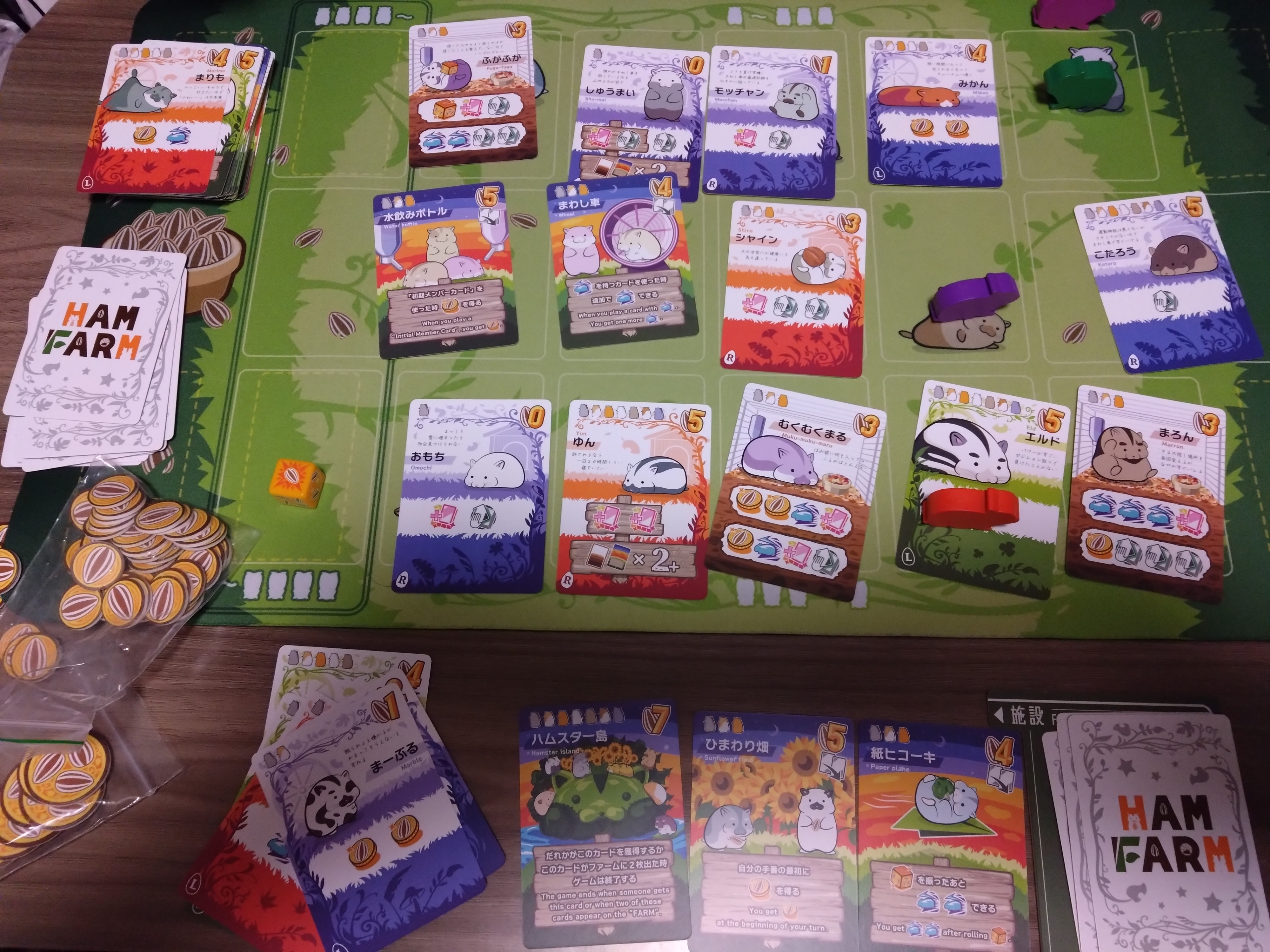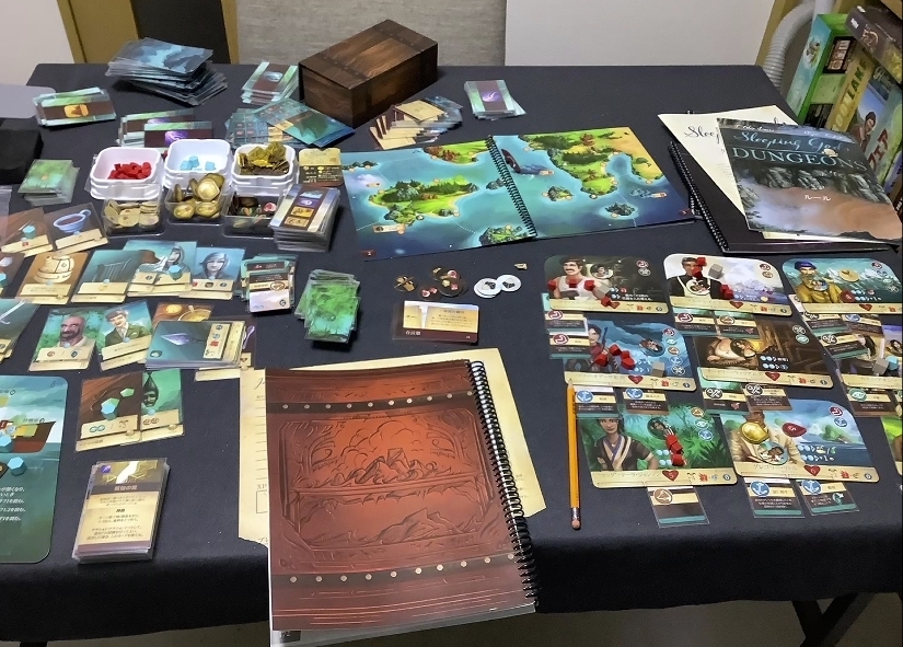 ボードだけでもテーブルのほとんどを埋めているというのに・・・2人用でもういっぱいいっぱいですよ。