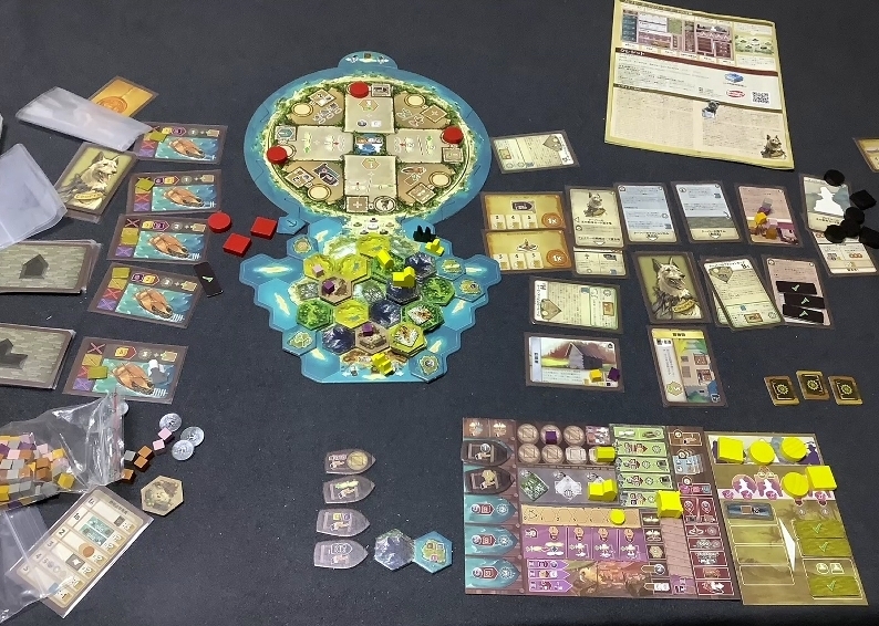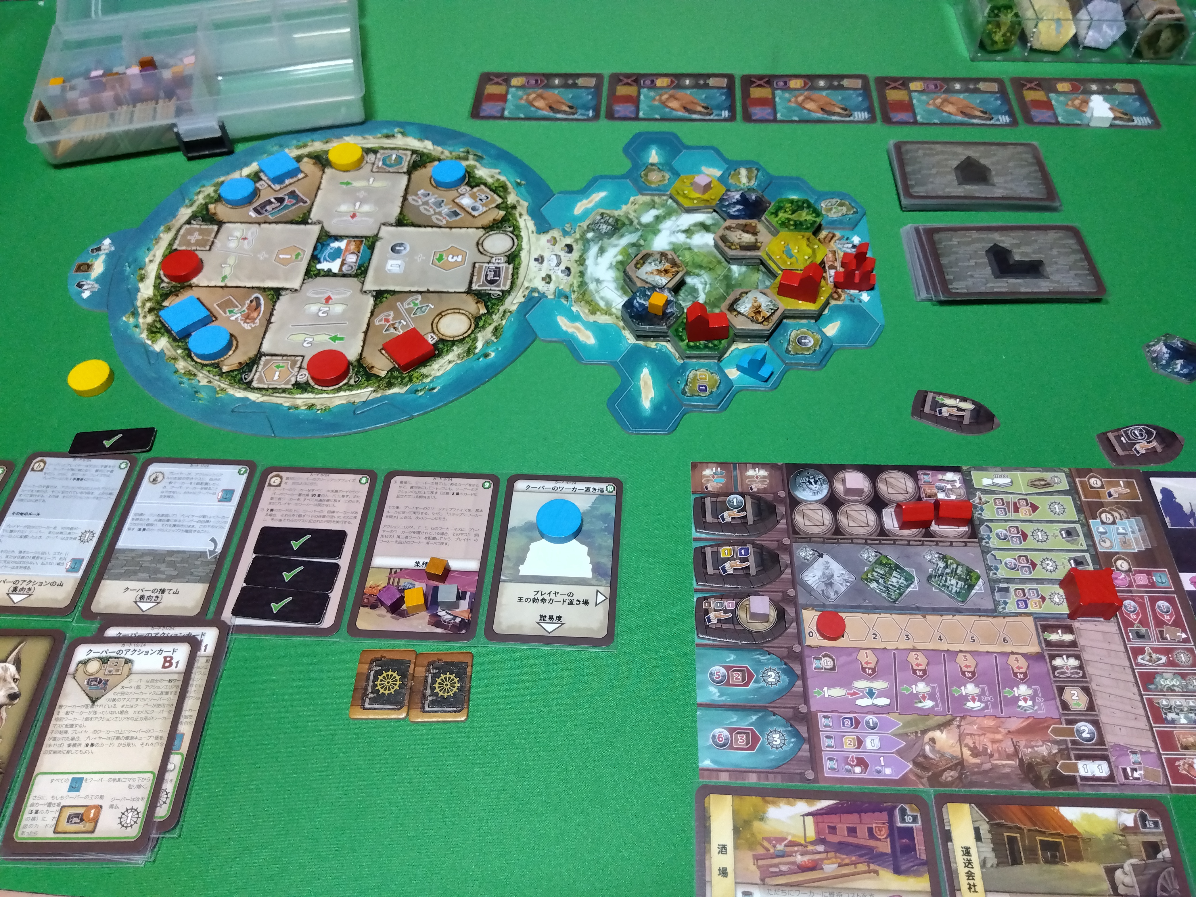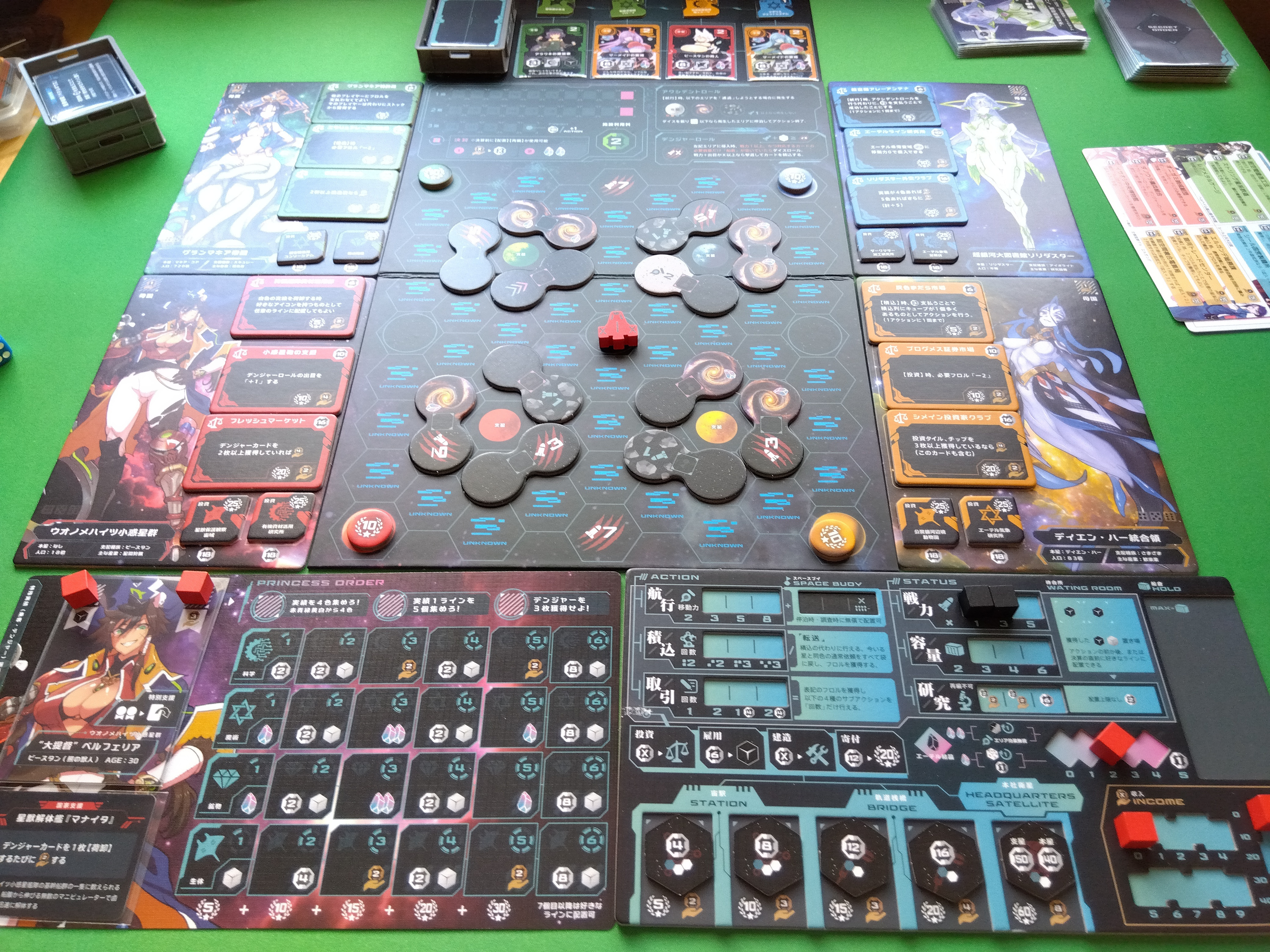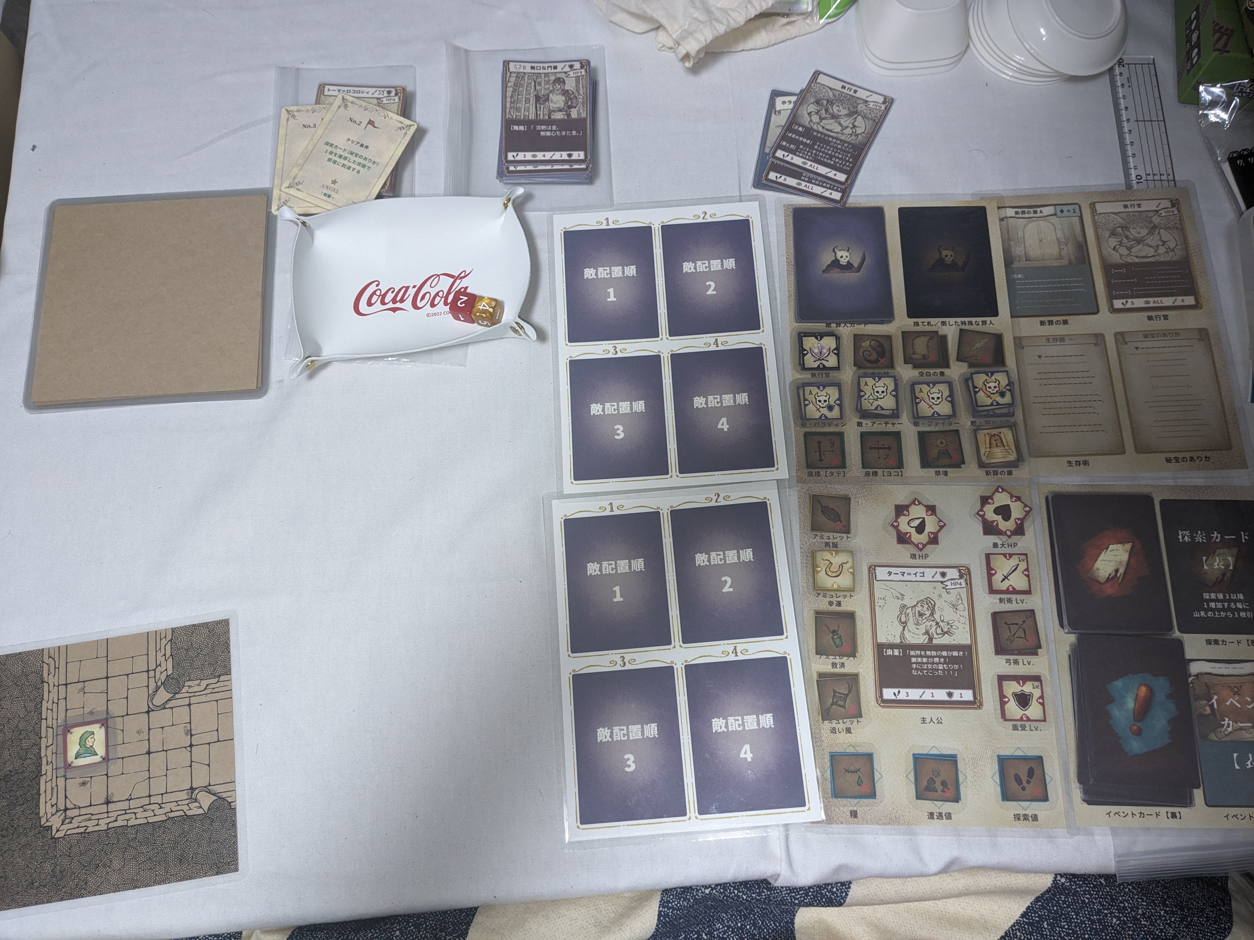 ボードだけでもテーブルのほとんどを埋めているというのに・・・2人用でもういっぱいいっぱいですよ。