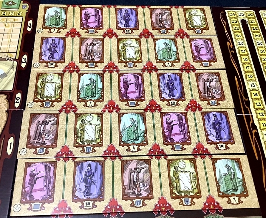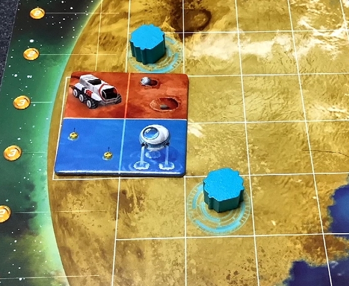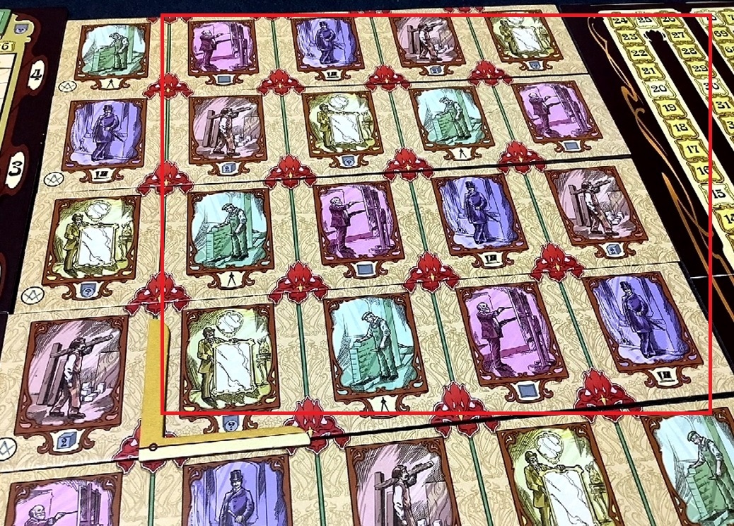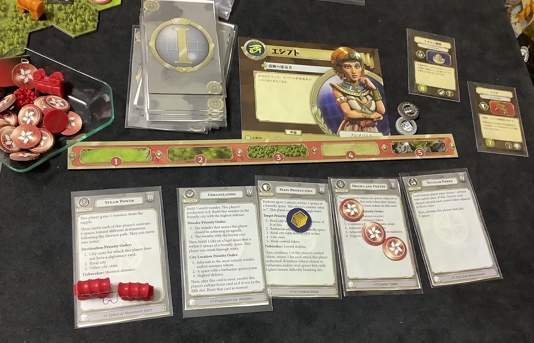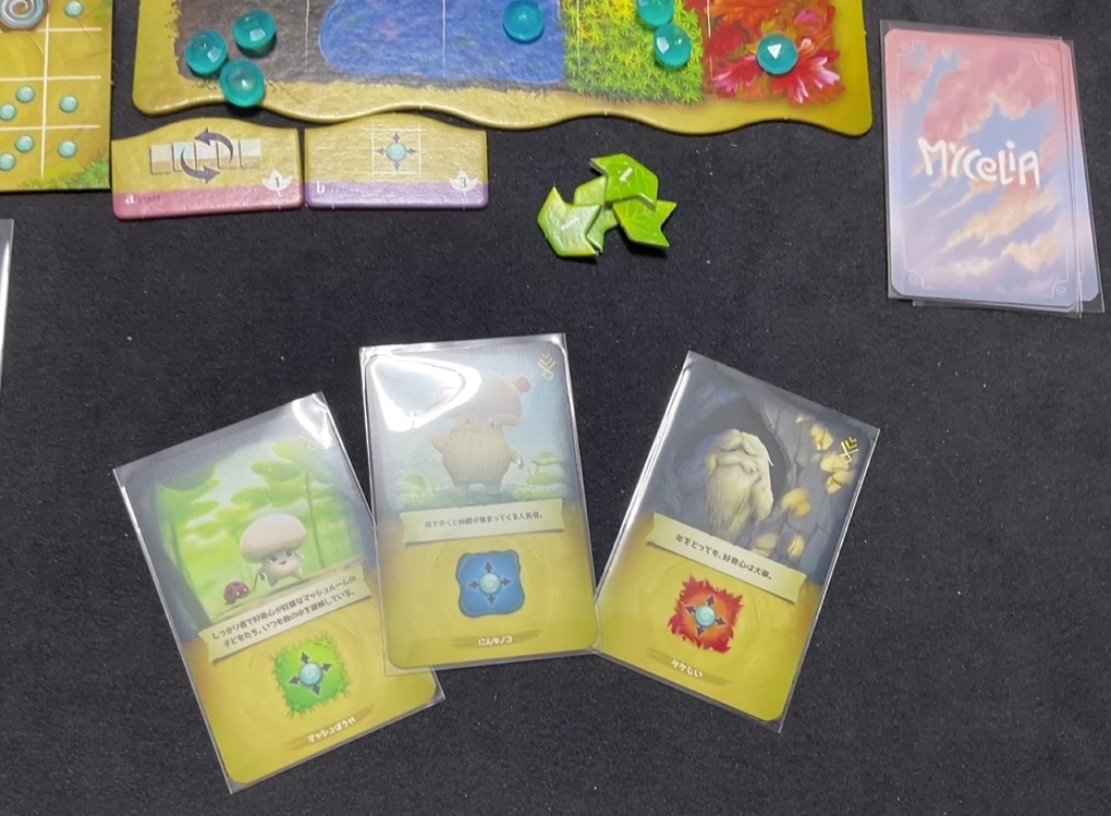 真ん中はちょっと特殊でして・・・これも一枚のボードではなく横長のタイルが5枚繋がっているのでゲーム毎に場所や位置が変わります。