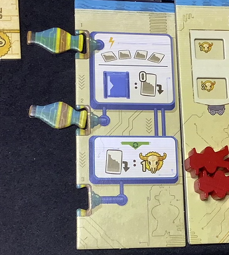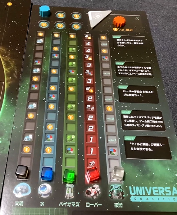 このカードによって個人ボードのトラックが上がったり、次のラウンドのスタートプレイヤーが決まったりします。