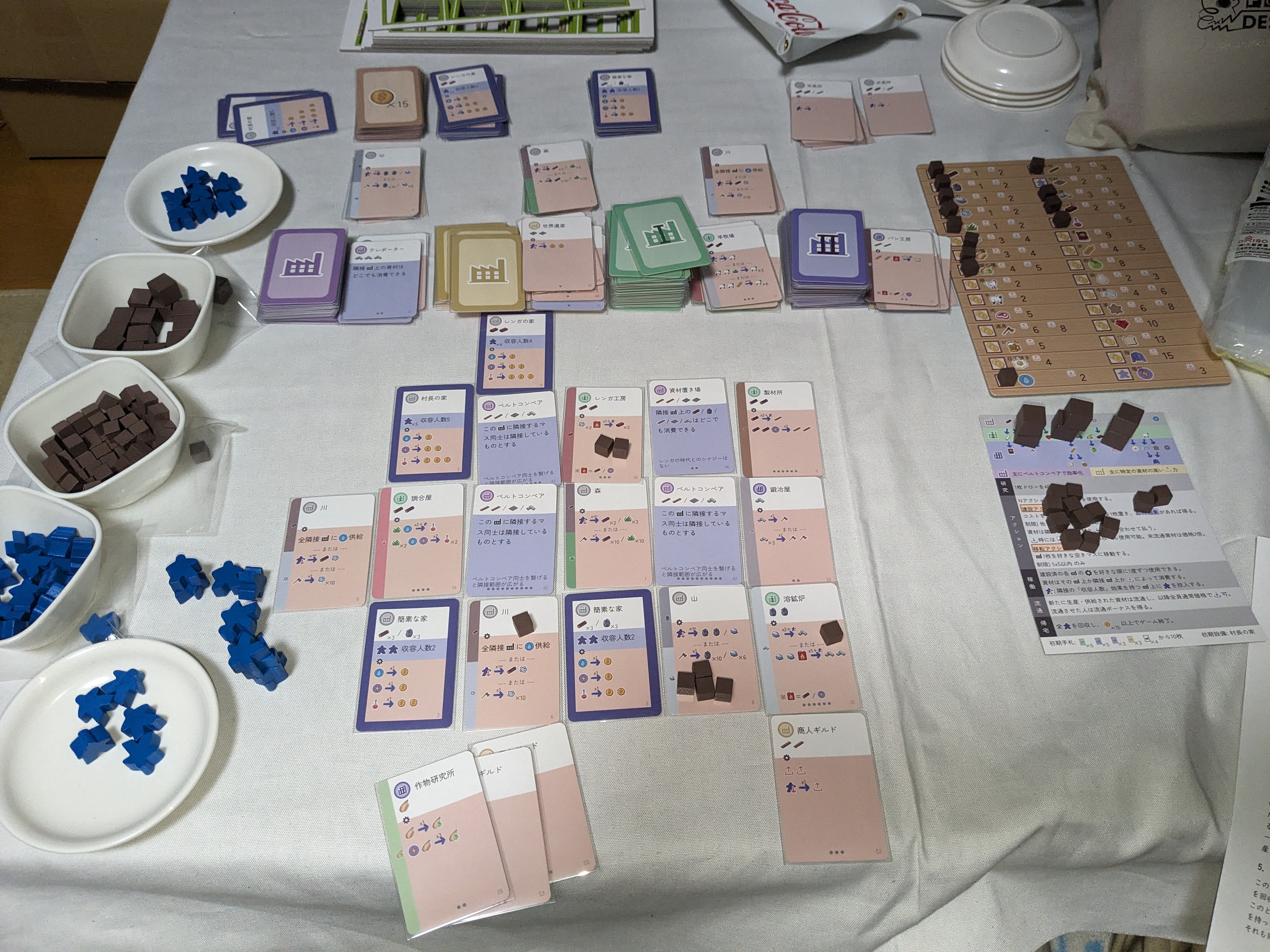 ただまぁ、実際に動かしてみたら、ワカプレ+セリ+エリアマジョリティー+セットコレクション+カード能力ありのごった煮のくせに動きがわかるとしっくりくるという・・・