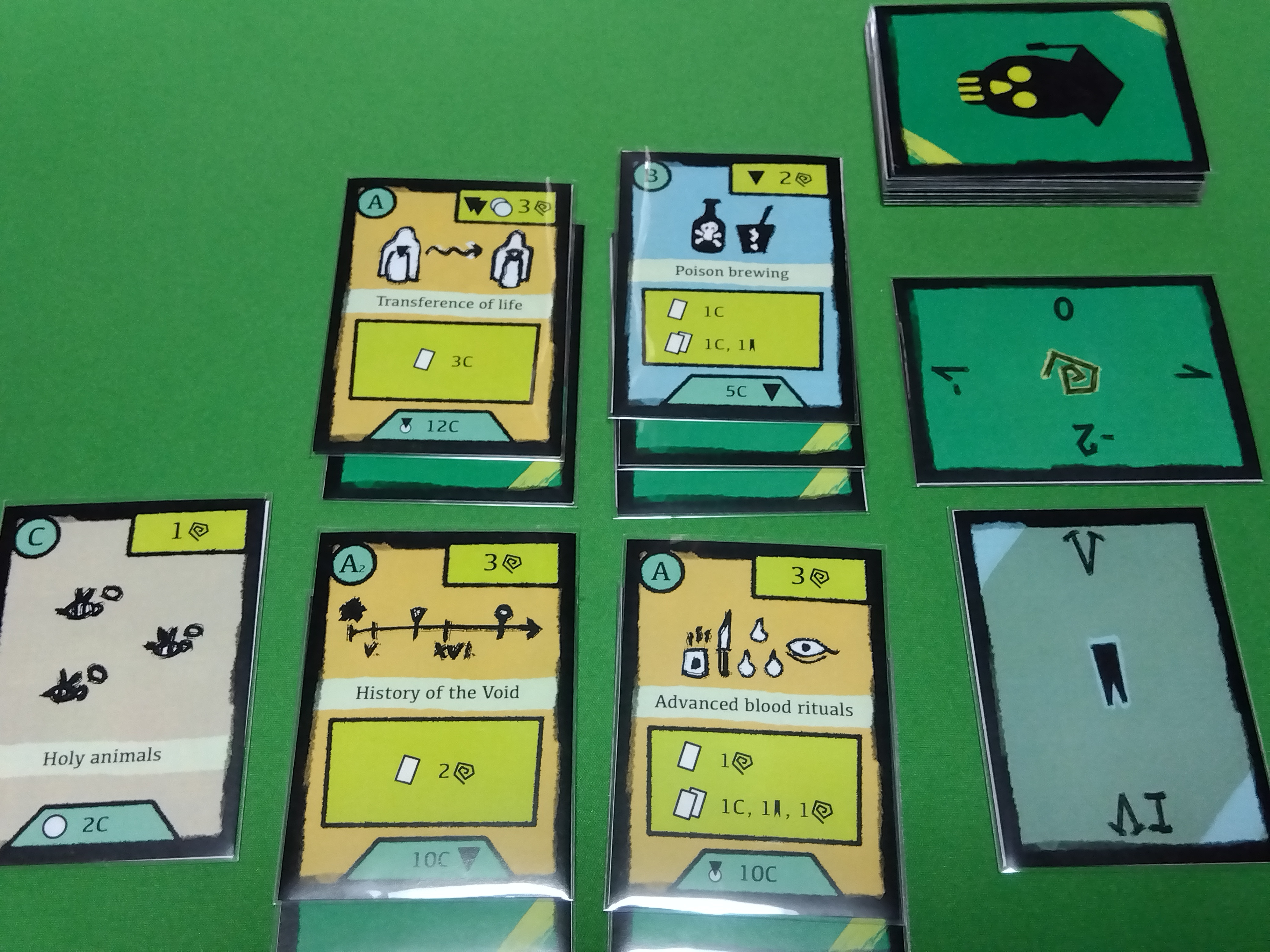 メメントオンライン→だいぶ軽いプレイ感。手札の素材カードを1枚場に出し、最後の1枚を出した時に場にある同じ種類のカードをもらえる。4種類集めたらお金に換金してキャラクターカードを購入。キャラクターカード全てが買われたらゲーム終了。PvP要素は薄めで各自バラバラに移動することが多そう。正直薄味な作りだと感じたのでボリュームに期待すると肩透かしを受けるかもしれません。