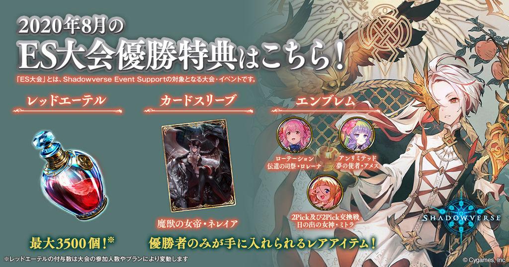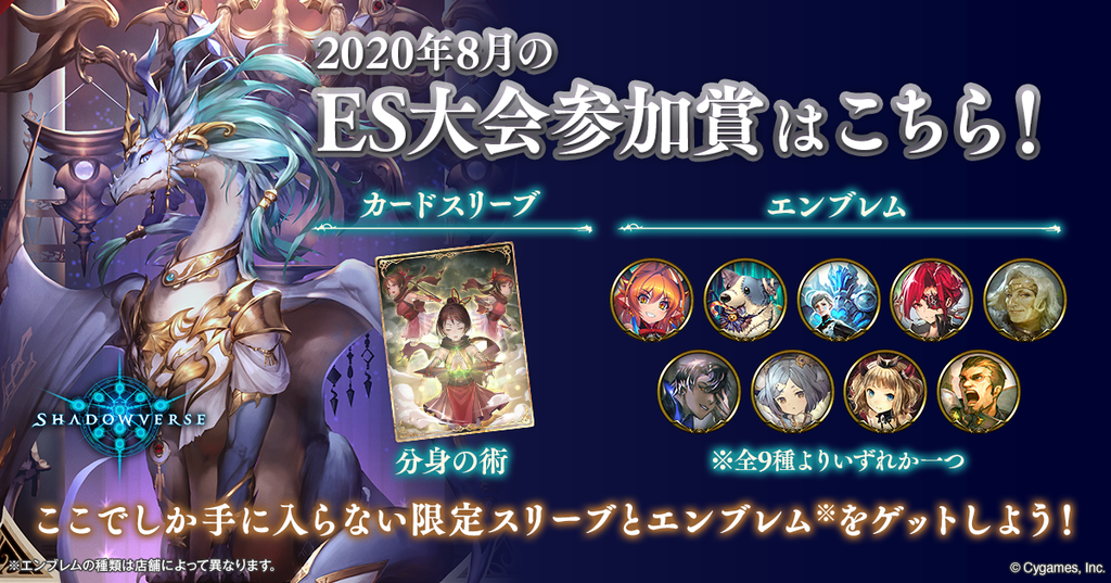 イベント名 【8/21】シャドウバースES アンリミ大会 in ゲームカフェアンドバールスト 開催日 2020 年 8 月 21 日 受付開始時間 18:00 〜 開始時間 18:30 〜 募集定員数 16 人 参加費 なし 参加費の使用目的 店舗料金のみ必要です。チャージ500円(1回のみ)、ドリンク代400円~ 無制限遊び放題、飲み放題あります。 イベント詳細 大会種別 個人戦 参加条件 誰でもOK, 初心者歓迎 エントリー方法 事前登録, 当日受付 試合方式1 デッキ構築戦(アンリミテッド) 試合方式2 BO3, BO5, その他 試合方式2(その他) BO3以上総当たり戦、当日参加者の方と調整しながら決定します。 大会方式 シングルエリミネーション, リーグ戦 大会ルール 大会参加に必要なもの インストール済み端末。初めてご参加の方は、大会に参加できない場合でも、体験や遊び方などの説明を別途させていただきます。 参加賞エンブレム
