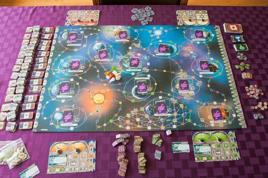 | 詳細内容 | 伝説のボードゲームが20年以上の時をこえ、新しく蘇る! 1988年に発売された古典的傑作ゲーム「マーチャント・オブ・ヴィーナス」がリメイクされ登場します。リメイクとはいえ、旧作ファンも楽しめるよう、2種類のゲームボードと、新・旧、2つのルールが入っているという豪華版。 パーツは多いのですが、やることは意外と単純。プレイヤーは自前の宇宙船を駆って、未知の宇宙を渡り歩き、新たなエイリアンの文明を発見し、交渉し、交易するのです。その間、ミッションを達成し、宇宙船をグレードアップし、海賊と戦い、宇宙ステーションを建造し……と、いろいろなことがやれます。 しかし、結局のところ、目指すは「富」! ビッグゲームですが、このあたりがわかりやすい。とにかく儲けましょう! (ボドゲーマより参照) * こちらのゲームはかなりのヘビーゲームとなっております。3時間越えのゲームなのでそちらの点はご理解いただいたうえでご参加をお願いします * 初めての方でも楽しめるように、ゲームの説明はさせていただきます。 ツイプラ、ホームページ、OSGのお問い合わせフォーム、電話にてのご連絡にて皆様のご参加希望を募集します。 ホームページ→ ご予約