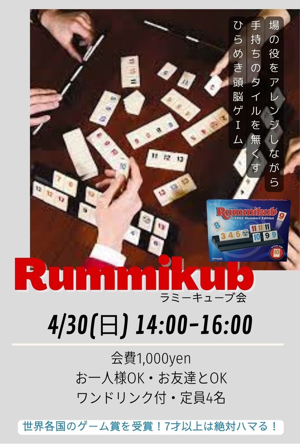 | 詳細内容 | ※こちらのイベントは募集定員を満たしたため、キャンセル待ちの対応とさせていただいてます。ご了承ください 9カ月ぶりの開催! 🔢『日曜ラミーキューブ会』 |