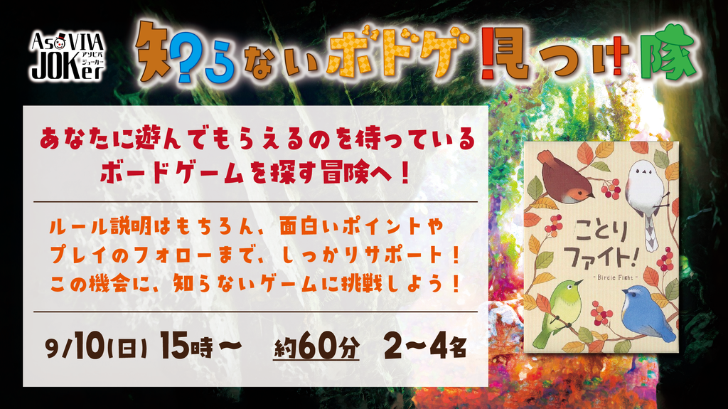 ▼イベント参加予約▼いまこの世界にはたくさんのボードゲームが存在しています。 ルールの説明はもちろん、ゲームの面白いポイントや ┛┛┛┛┛┛┛┛┛┛┛┛┛┛┛┛┛┛┛┛┛┛┛┛┛┛┛ 今回みなさんが出会うのは『ことりファイト』 『ことりファイト』 |