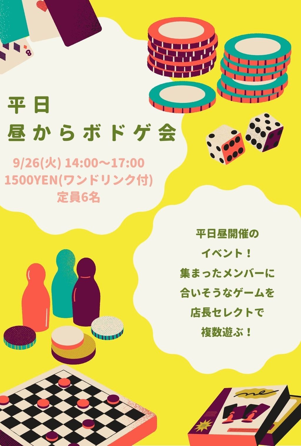 | 詳細内容 | ※こちらのイベントは募集定員に達したため、キャンセル待ちの対応となります。ご了承ください 平日昼から集まった人数に合わせて店長セレクトで複数のボドゲを遊ぶイベントです! 〇遊びたいけど休みの合う友達がいない 🌞『平日昼からボドゲ会』