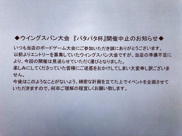 | 詳細内容 | 10月のボドゲ大会はウイングスパン大会『パタパタ杯(カップ)』を3店舗で開催します❗