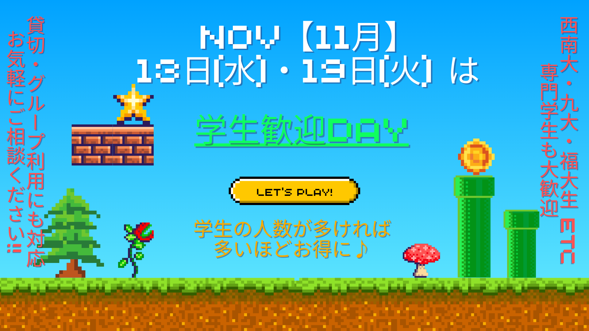 | 詳細内容 | Treasure Box(トレボ)は、 西新というエリアにあります。 この西新地区は福岡市の文教地区とも言われ、 修猷館高校、西南学院(高校・大学)、 国際医療福祉大など、学校も多いエリアです。最寄りの西南大生はもとより、九大生や福大生も比較的多く来てくれていて、 そんな学生さん達が気軽に来やすい日程を作り、そんな皆さんとワイワイ楽しみたい …そんな想いの企画です!!