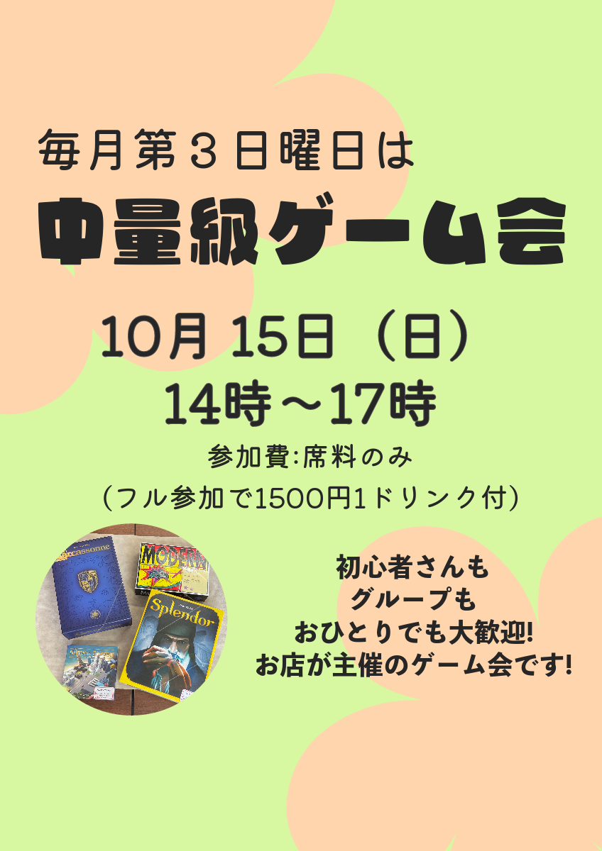 | タグ | ボードゲーム、初心者歓迎、初参加歓迎、途中参加OK、お一人様歓迎、途中抜けOK |