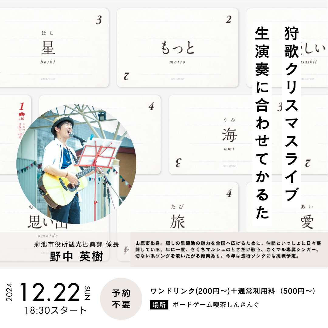 クリスマスソングを中心とした生演奏に合わせて狩歌で遊びます🙌 ぜひ、みんなでカルタしませんか? |