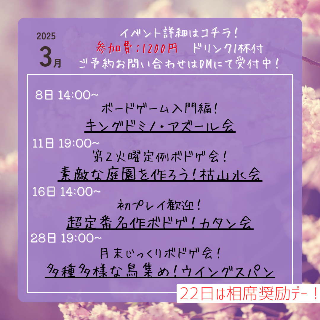 | 詳細内容 | 3月のイベント情報はコチラをご確認ください!