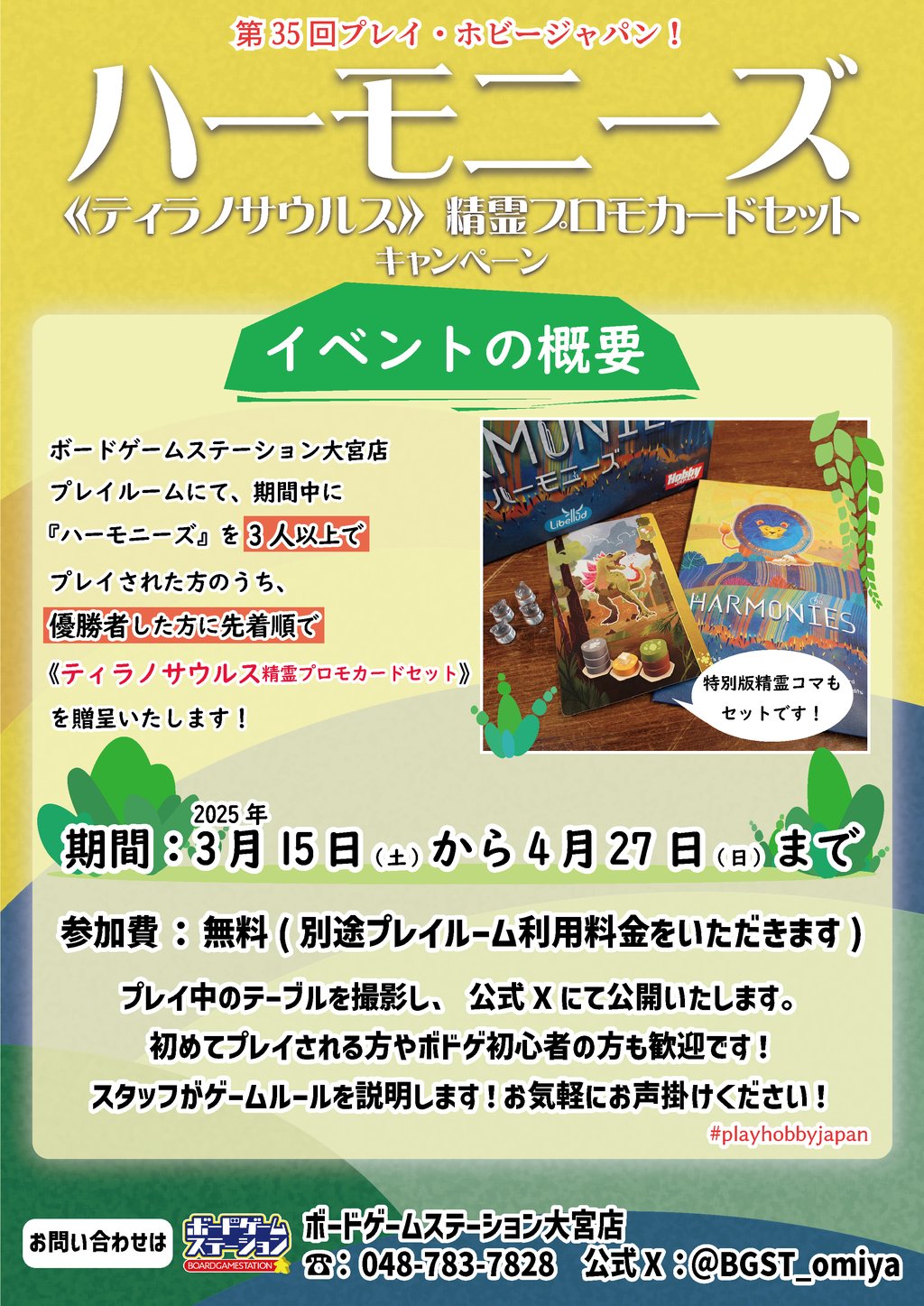 | 詳細内容 | 「プレイ・ホビージャパン!」第35回キャンペーンプログラムは 『ハーモニーズ』!!