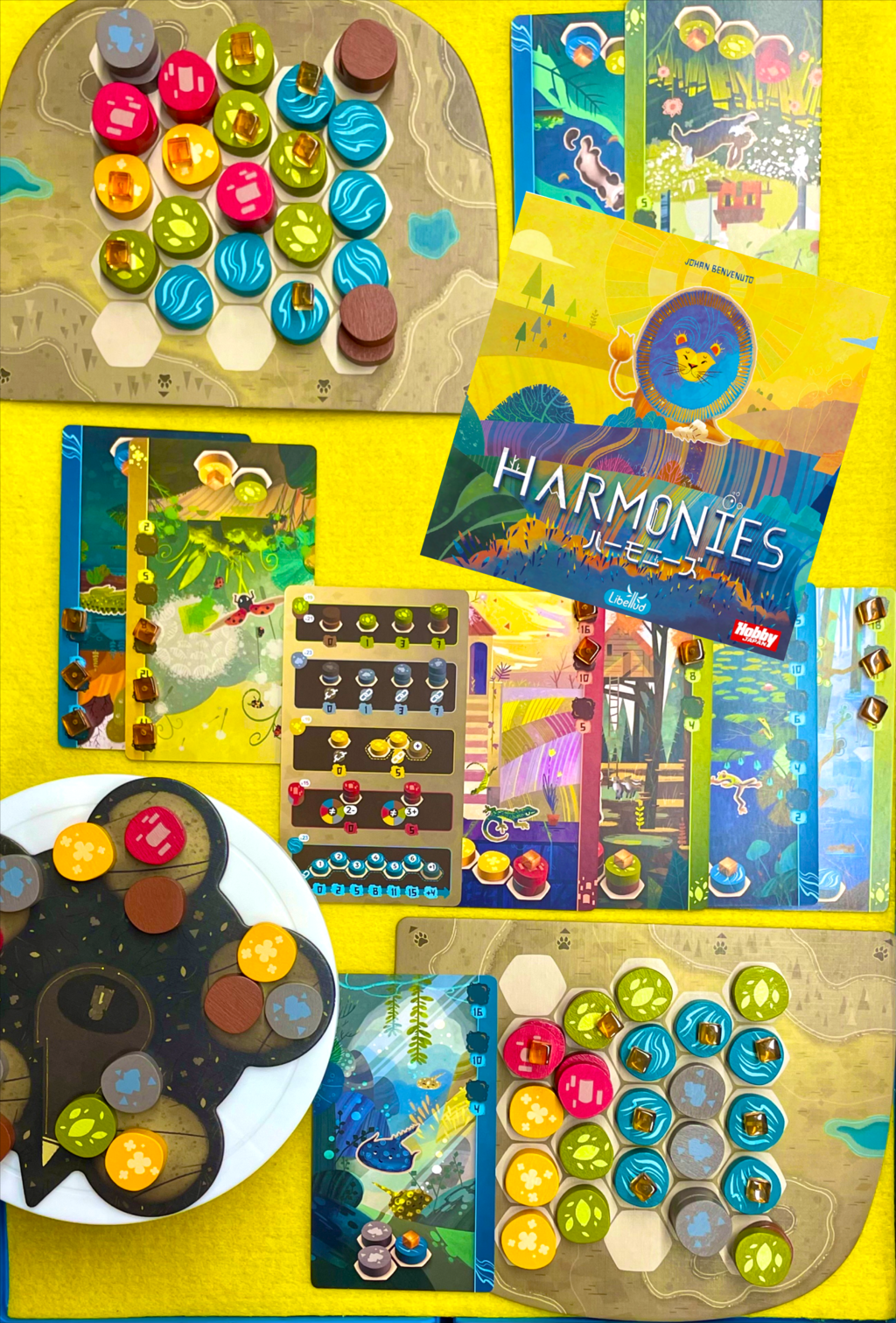 【『ハーモニーズ 』とは?】環境作り箱庭系タイル配置ボードゲーム 土地の種類は全部で6種類 限られたプレイヤーボード上にどのように、