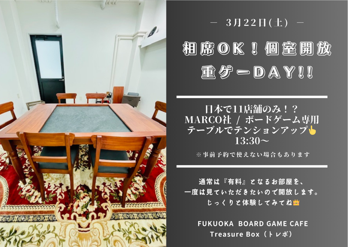 | 登録先カフェ/店舗 | 福岡ボードゲームカフェ Treasure Box |