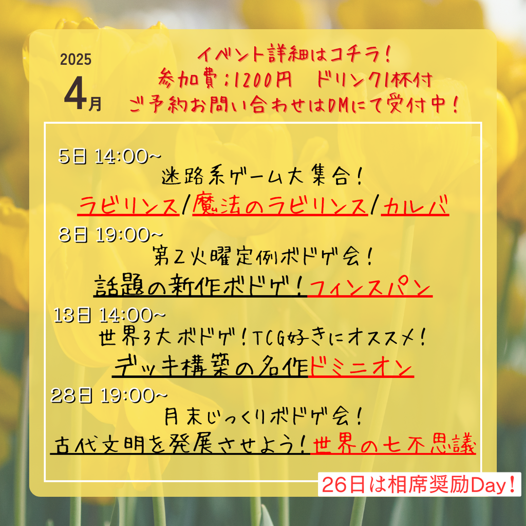 | 詳細内容 | 4月のイベント情報はコチラをご確認ください!