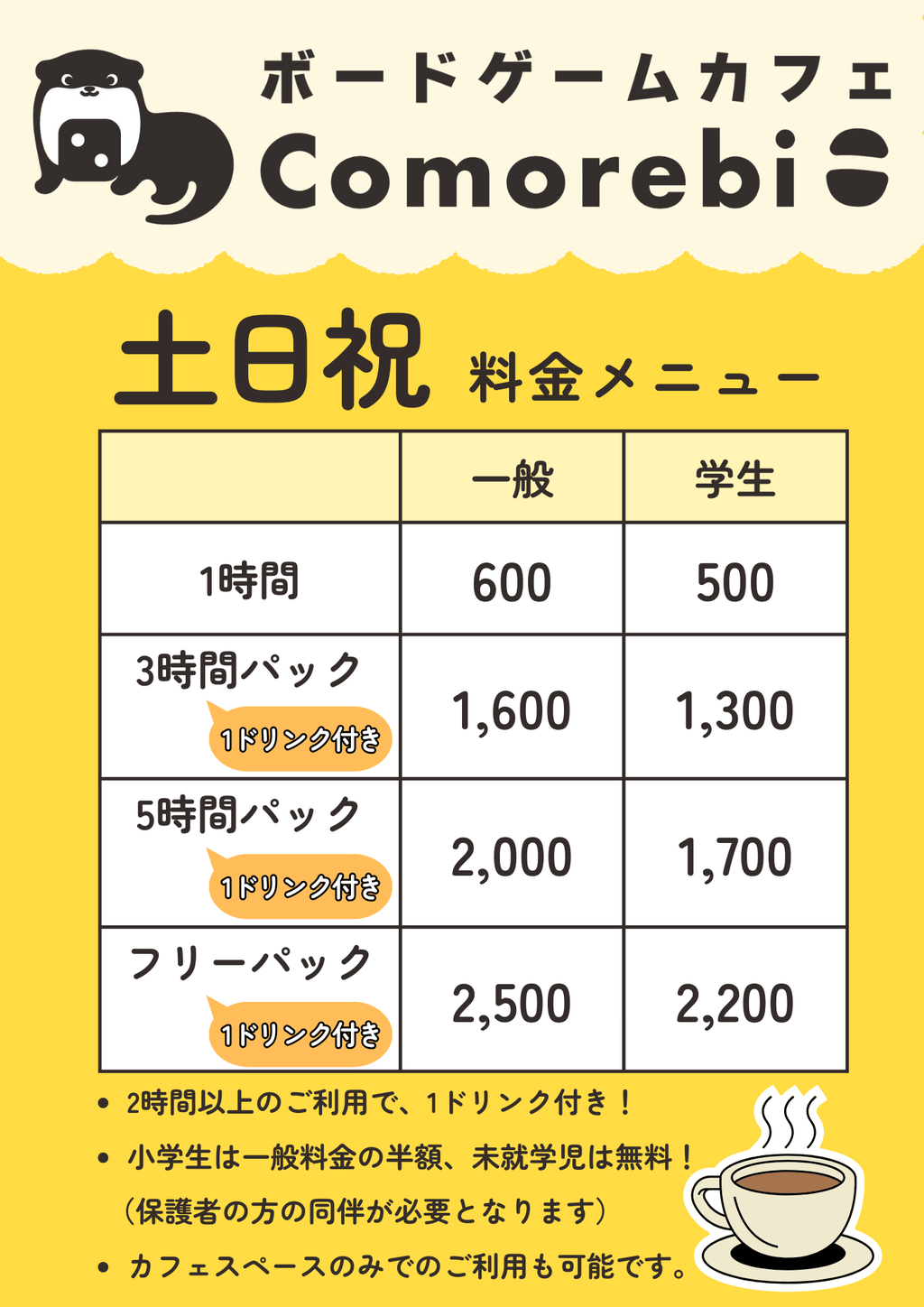 | 登録先カフェ/店舗 | 茨木ボードゲームカフェComorebi |
