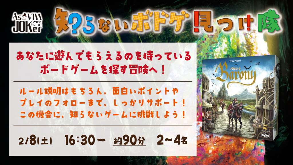 | 登録先カフェ/店舗 | ボードゲーム&謎解き AsoVIVA JOKer |