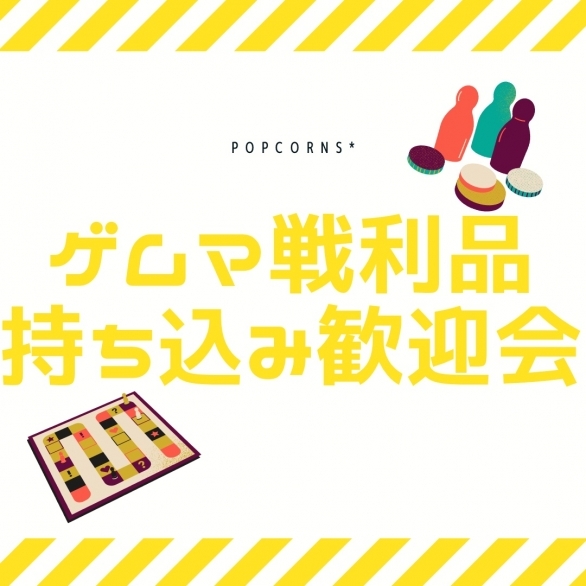 大井町駅から徒歩約3分! ボードゲームカフェPopcorns*で、 相席大歓迎のゲムマ戦利品会 を開催いたします! ゲームマーケットで獲得した戦利品たちを遊ぶ場所、探していませんか? ◆せっかく買ったボードゲーム、すぐに遊んでみたい! ⇒そんなあなたに!ぜひ当店で戦利品相席歓迎会に参加してみませんか? イベント概要 ■日時 開始時間:13:30 ■参加定員 来店時間がお決まりの場合はコメント欄に時間をお書きください。 ■参加費 【土日祝日料金】 ・モーニングパック(10:00~15:00):2500円1ドリンク付 ※+1000円で次のパックの終了時間まで延長可能 ■開催場所 ■参加方法(当ページでの参加表明は予約とみなされません。下記いずれかでご予約いただけます) ★イベント終了後も通常料金でお店をご利用いただけます。 |