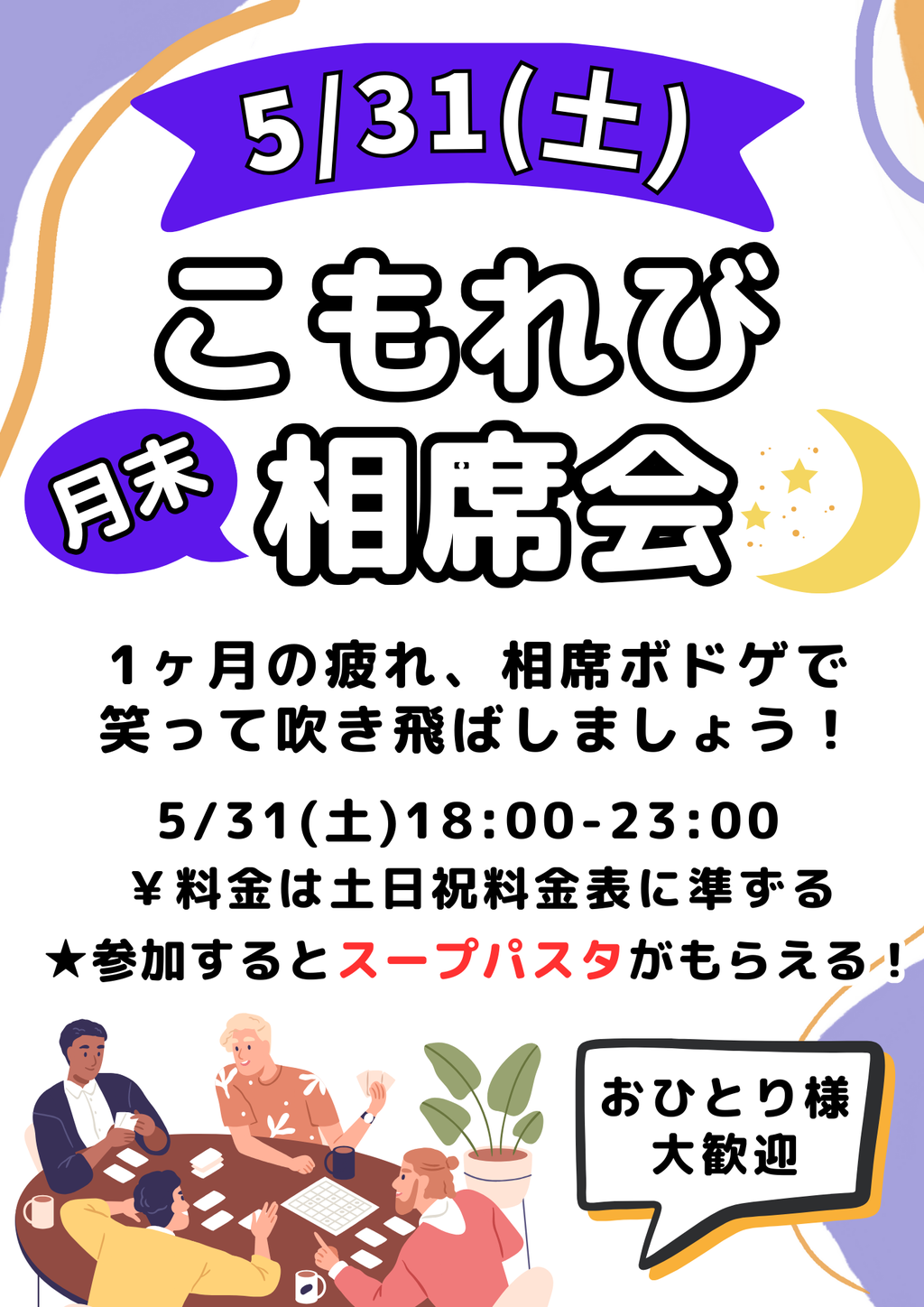 10/25(金)初めての相席会@茨木ボードゲームカフェComorebi【おひとり様大歓迎!】2024年10月25日 金曜日