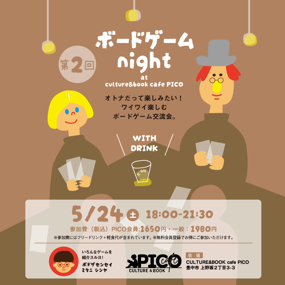 オトナだって楽しみたい! 世界的コミュニケーションツールであるボードゲームを用い、 ボードゲームに興味がある方も無い方も。 夜のひと時を、ゆったりとご一緒しませんか。 ★ご予約はこちらから★ ※ご予約には会員登録が必要ですが、ご予約無しでも当日参加可能です。 【日時】2025年5月24日(土)18:00~22:00(開場17:00) 【会場】カルチャー&ブックカフェPICO 【参加費(税込)】 ・定員は特に設けておりません。 ※会場は飲食店なので飲食物等の持込みはご遠慮ください。 皆さんとご一緒できる事を楽しみにしております♪ |
