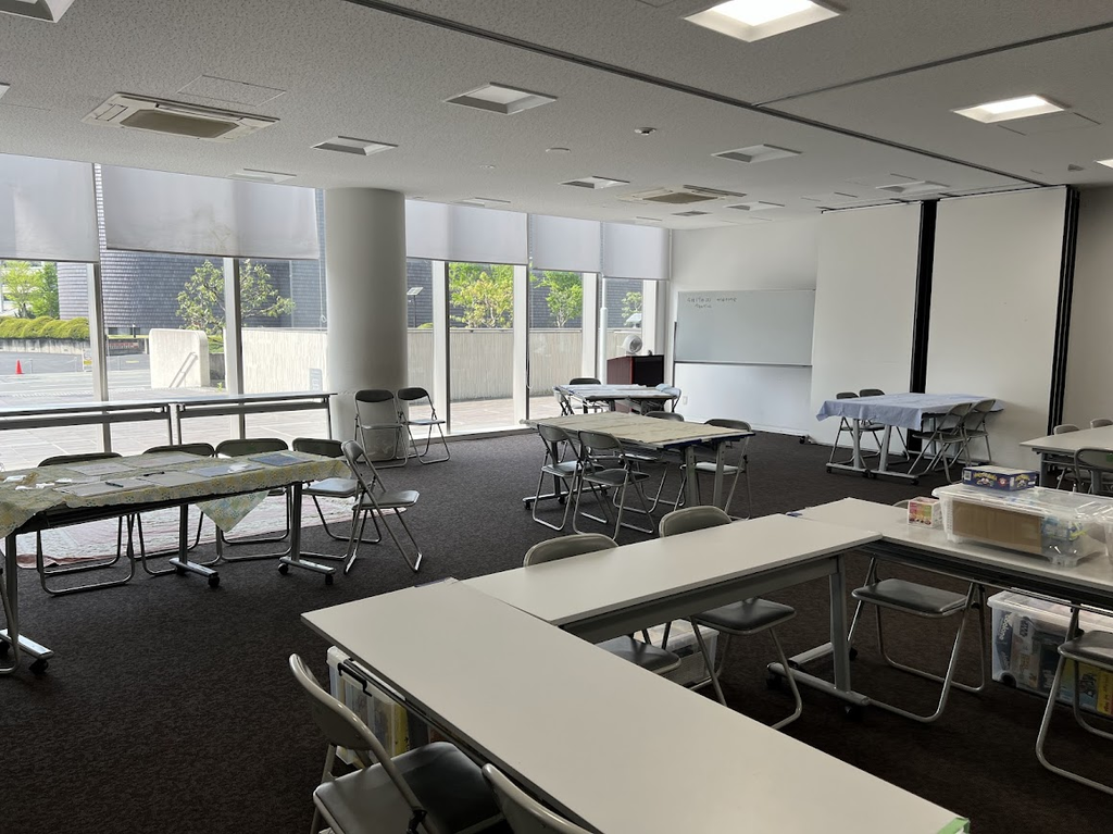窓際が参加者の荷物置き場。テーブル間を広くとり、ゆったり過ごしてもらっています。